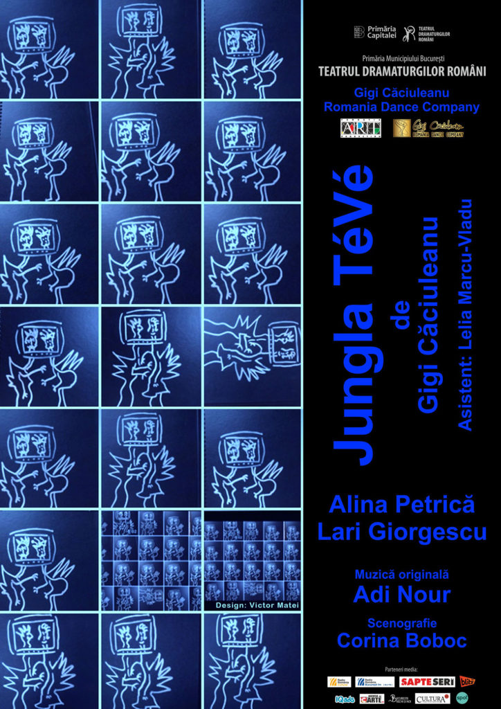 „Jungla TéVé”, un poem corporal, vizual, coregrafic, plin de vorbe, gesturi și mișcări șugubețe, un poem deștept, pe ton sarcastic, strigat și șoptit deopotrivă, ca cele mai tandre dintre mustrările vieții. Pe calea spre cel mai nou postverb și uimitoarele tâlcuri ale fructelor lui proverbiale: La poemu’ lăudat te duci cu Căciuleanu!