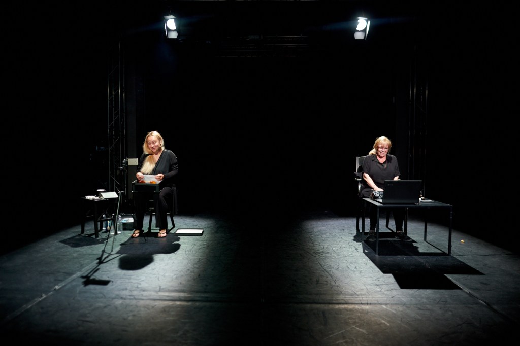 Concentrarea maximă este pe rostire, respirații și stare, pe care ambele actrițe reușesc să le imprime distinct personajelor lor, să le articuleze și să le așeze într-un complementar veridic, deși din relațiile scenice lipsește interacțiunea directă (nu se privesc și nu stau niciodată față în față). Prăpastia e în ochii privitorului. Convenția spectacolului împarte micuța scenă din Gabroveni, sărăcită dinadins de lumini și obiecte inutile, în două. Două spații marcând intimitatea fiecăreia, țintuite în câte un scaun în fața ecranelor prin care se privesc și-n spatele cărora ne pot privi și pe noi direct în ochi, pentru a ne striga cele mai crunte adevăruri. Intimitate din care se naște un curaj pe care niciuna dintre ele nu l-a avut până acum.