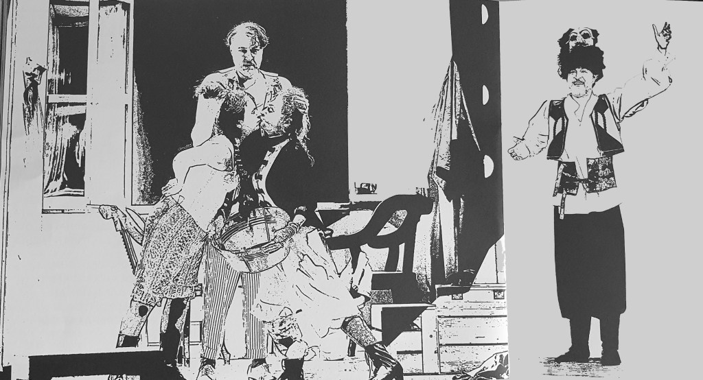 Unde dă năvală de la început Iancu Pampon al unui Emilian Oprea șarmant, energic și revoltat, trișor în cărți de meserie, amantul trădat ce-și urlă turbarea de gelozie și face jurământ arzător de răzbunare aliindu-se cu Mița, pentru ca mai apoi să se înfrățească în durere cu un alt tradus, Crăcănel, după ce l-a bătut bine confundându-l cu Bibicul. Însărcinat cu cele mai importante scene comice din spectacol, Claudiu Bleonț reușește un Crăcănel savuros, tonic, cald și infinit generos în naivitatea lui molipsitoare (deși tradus a opta oară, e singurul neisteric în toată isteria lui, un suflet viu, amuzat și curios ce încearcă să îmbie papagalii la discuție, fără pic de astâmpăr în ciuda aspectului său deloc impunător, el dă piept (!) catindatului), acoperită ghiduș cu o pălărie de clovn și întreținută de exerciții fizice solicitante, minunat executate, și de gesturi de scamator narativ (în care a fost ingenios integrat bastonul) ce nu prididesc să ni se arate de sub pantalonii lui rupți în confuzie, în timp ce reclamă consternat lipsa vreunui sergent care să-l fi ajutat în situație.