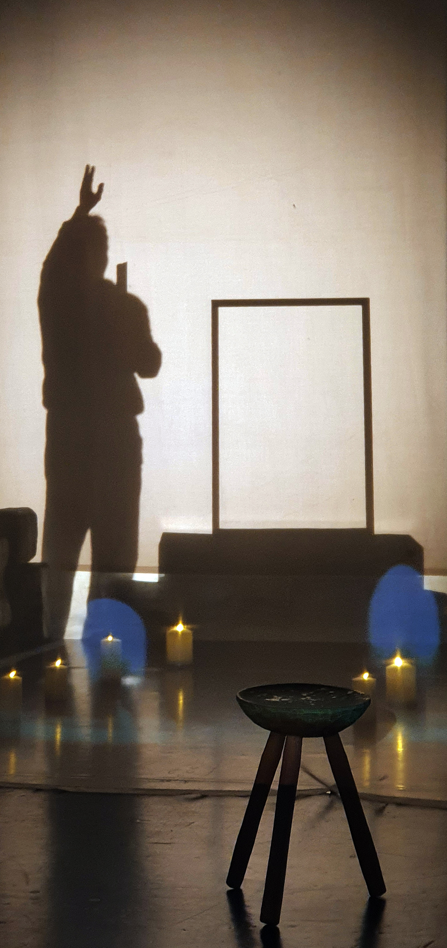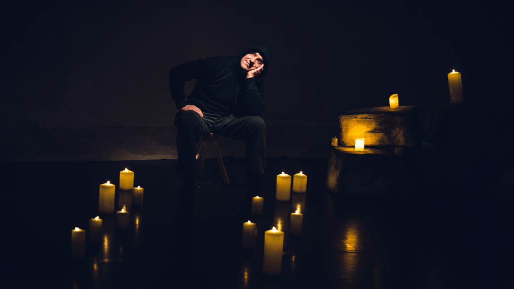 Cu această conștiință a rolului său, Claudiu Bleonț se erijează cu succes într-un erou salvator al neputințelor noastre, ale tuturor, înarmat cu o lumânare lungă pe care nu obosește să o aprindă răbdător de câte ori se stinge, împreună cu credința lui și a noastră, de parcă s-ar fi născut cu ea în mână, suprapunându-se până la identificare absolută cu personajul său, căruia îi împlinește cu un ciudat firesc fiecare gest (foarte ordonată mișcarea lui dezordonată prin scenă și prin sală și atent studiate și lucrate gesturile, în special manevrarea și integrarea lumânării în joc), mișcând abil puținele obiecte din scenă (scenografia a căutat și ea discreția, Anca Cernea ascultând cu atenție indicațiile dramaturgului și reușind să imprime un aer bisericesc, nepretențios, al cărui volum e construit prin lumini, umbre și proiecții) într-un fel de război promis cu sinele dintr-un război uitat cu Dumnezeu, pe altarul unei solitudini aici în speranța unei familii sacre Acolo. Sau doar o altă scenă dintr-un alt război pentru același sfârșit de lume, un alt poem despre singurătate pe altarul unui volum de credințe în împreună. Călcăm în jos și alunecăm și noi în sus, către nori, plutind alături de paracliser și de Dumnezeu. Scâncete de prunc transformate de fumul lumânării în vorbire păcătoasă, năzuind să ne înfruptăm totuși cu lumină la Cina scea de Taină și să le suflăm sfinților în aureole după slujbă, cu toată credința așezată în straturi de fum pe pereții catedralei pe care ne pictăm neprihănirile sperate și păcatele iertate, ascultând cum crește iarba pe iluzia rănilor noastre, printre crăpăturile pe care încercăm și noi să le umplem cu ceva, poate chiar cu verdeață, deși se găsește întotdeauna loc pentru vreo firidă mai greu de umplut ca o gură de iad… Anume căscată pentru unii ca noi, cioturi de magi, cioturi de fluturi, cioturi de sfinți, cioturi de paracliser, cioturi de lumini, cioturi de umbre, cioturi de lumânare din care se scurg, fără milă, ultimii stropi fierbinți de ceară, în jurul cărora se încleștează cuminți mâinile a implorare, agățându-se de focuri și de stele în timp ce pământul cade în beznă.