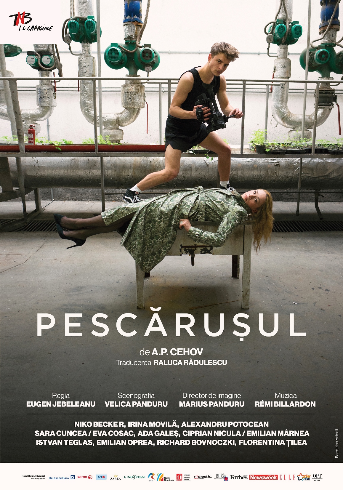O importantă mână de ajutor în demersul lui Jebeleanu este Richard Bovnoczki, cea mai elegantă și mai cehoviană prezență în scenă, care se califică pentru un admirabil Șamraev, administratorul pedant și nostalgic, ce cucerește și înveselește publicul cu fiecare aserțiune despre actele artistice și calitatea actorilor de altădată, dinainte de ce el consideră a fi fost momentul decăderii teatrului (vorbește cu la fel de vizibilă bucurie despre bâlciul de la Poltava sau Opera de la Moscova, obținând aplauze și numai la primele exclamații de dulce aducere aminte), un bărbat asumat și prezentabil care-și conduce ferm și cu aceeași eleganță ludică soția (superbă scena coridei, și numai pentru că se poate!), o Polina mai mult decât posibilă a Florentinei Ţilea, măcinată în fiecare zi de aceleași neliniști și aceleași insuportabile discuții, care dezvoltă o nevoie obsesiv-compulsivă de a (și de a se) curăța (poate una din cele mai evident exagerate energii puse în mișcare în acest mecanism) și care eșuează dulce-resemnat în demersul de a se lăsa fugită în lume cu Dorn.