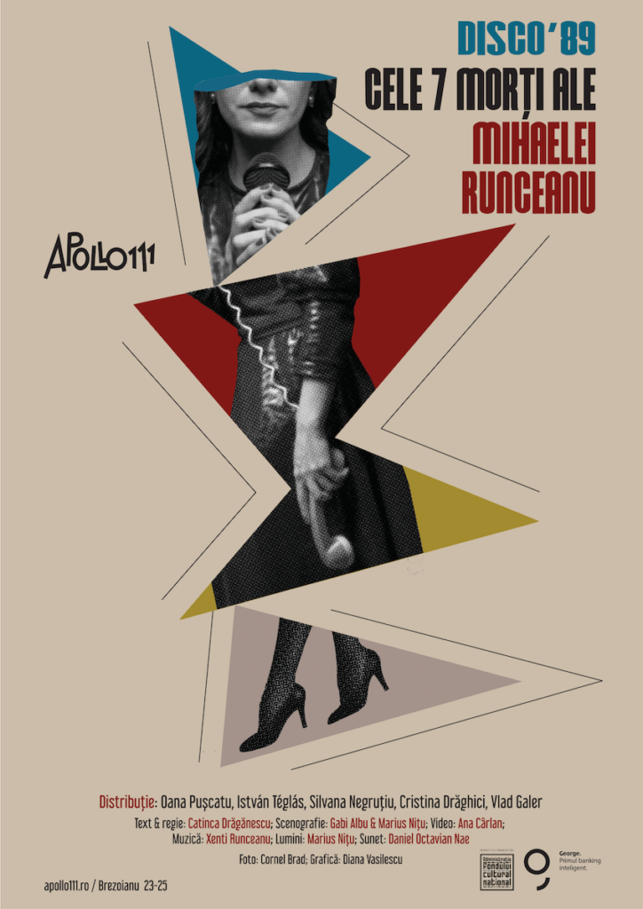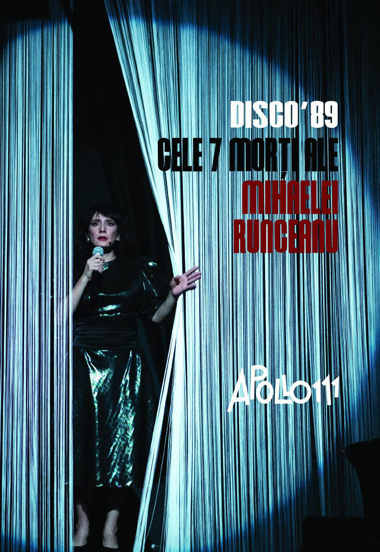 „Disco ’89: Cele şapte morţi ale Mihaelei Runceanu”. Sub acest titlu inspirat din dosarul penal (cele șapte piste considerate neexplorate de către procurori) au fost reunite o serie de monologuri și dialoguri atribuite celebrei cântăreţe de muzică pop, profesoară de canto la Şcoala Populară de Artă, legate prin muzica originală compusă de Xenti Runceanu, vărul artistei, prin care se încearcă reconstituirea din frânturi a unei conștiințe îngrozite, împinsă către disperare. Secvențe din ceea ce se petrecea în casa cântăreței sunt interesant intercalate cu apariții în presa vremii și pe scenă ale Mihaelei Runceanu, dar și cu activitatea securiștilor care se perindau în preajma ei pentru a aduna informații, ascultându-i telefoanele și chiar discuțiile din casă (deși n-a existat niciun dosar la Securitate pe numele ei) și smulgând mărturii de la apropiații ei, într-o nevoie de neexplicat de a fi scoasă din peisaj (personajul principal chiar dispare înainte de vreme din propria istorisire, prim-planul fiind brusc ocupat de o altă poveste a vremii, care ar fi putut avea parte de același tragism: fuga din ţară a Nadiei Comăneci, în aceeași perioadă).