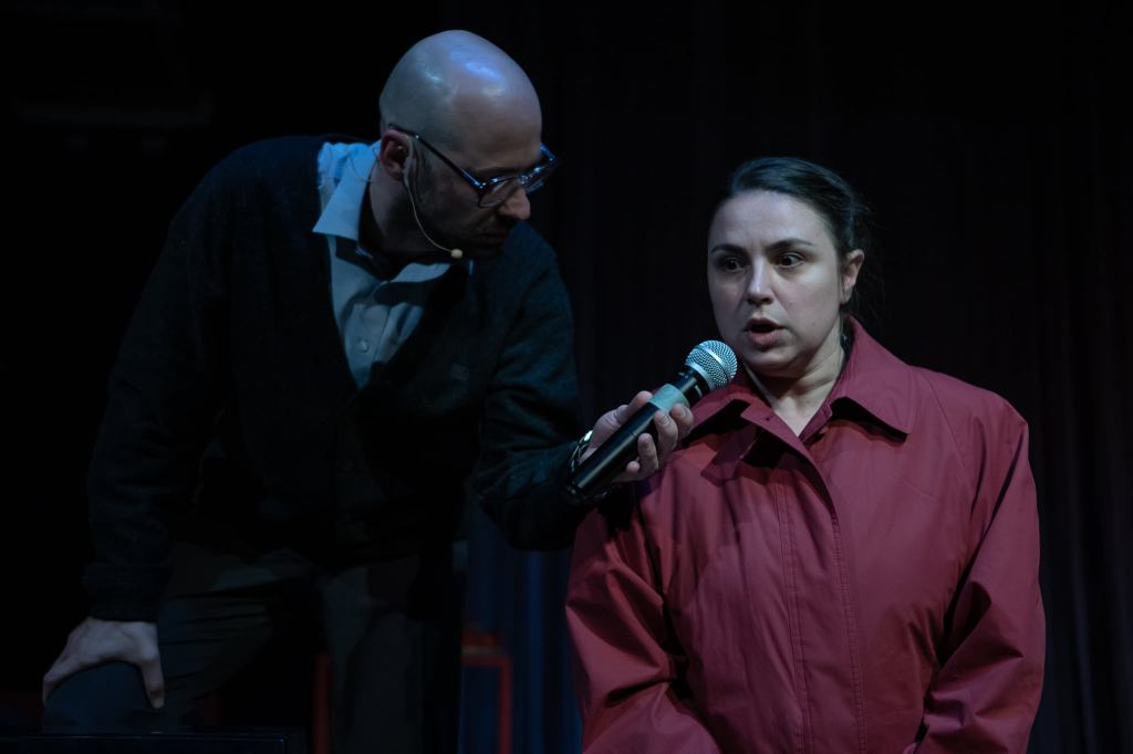 Pentru că celebritatea de care se bucură în profesie se pare că are un cost uriaș în plan personal, pe care nu se știe dacă este pregătită să-l plătească. Este supusă permanent unui filaj dur, excelent condus de personajul lui István Téglás care reuşeşte un pertinent ofiţer de de securitate, un mostru cu porniri melodramatice, iremediabil îndrăgostit de muzica persoanei pe care o filează, un manipulator de cinste, nu atât un as în arta persuasiunii cât un jongleur al disimulării, un personaj a cărui autoritate provine din exercițiile de putere, aproape ludice, manifestate prin cele mai crunte mecanisme de presiune și intimidare învățate în școala de teroare a regimului comunist, într-un sistem care și-a desăvârșit în cele câteva decenii de putere mijloacele de opresiune și arsenalul de distrugere psihică a individului, pe care István Téglás, un actor extrem de talentat și cu o plajă largă de calități și tehnici actoricești, uneori dinadins puse în conflict, reușește să-l construiască și să-l dezvăluie de-a lungul spectacolului. Este îndeaproape ajutat de partenera lui de scenă și de jocuri terifiante, o incredibilă Cristina Drăghici, încă și mai ludică, chiar plină de umor pe alocuri, prin care se echilibrează jocul psihologic, pentru a căpăta, prin prestația actriței, nu doar coerență în construcția bătăliilor mentale pe care le au de purtat împreună prin justificări individuale de entuziasm, dar și verosimil în prezentarea unui subtil (echipa de ofițeri bun/rău) de care a fost mereu susceptibilă intelighenția regimului. Agera complicitate a acestei echipe te face să pendulezi întruna între a crede că a fost o crimă la comanda regimului (suspiciune predominantă spre care te îndeamnă întreaga construcție a spectacolului) și mai puțin o crimă ce a avut drept mobil jaful, ipoteză parcă anume trimisă în ridicol, însă anume niciodată închisă sau cu măcar vreo notă concluzivă.
