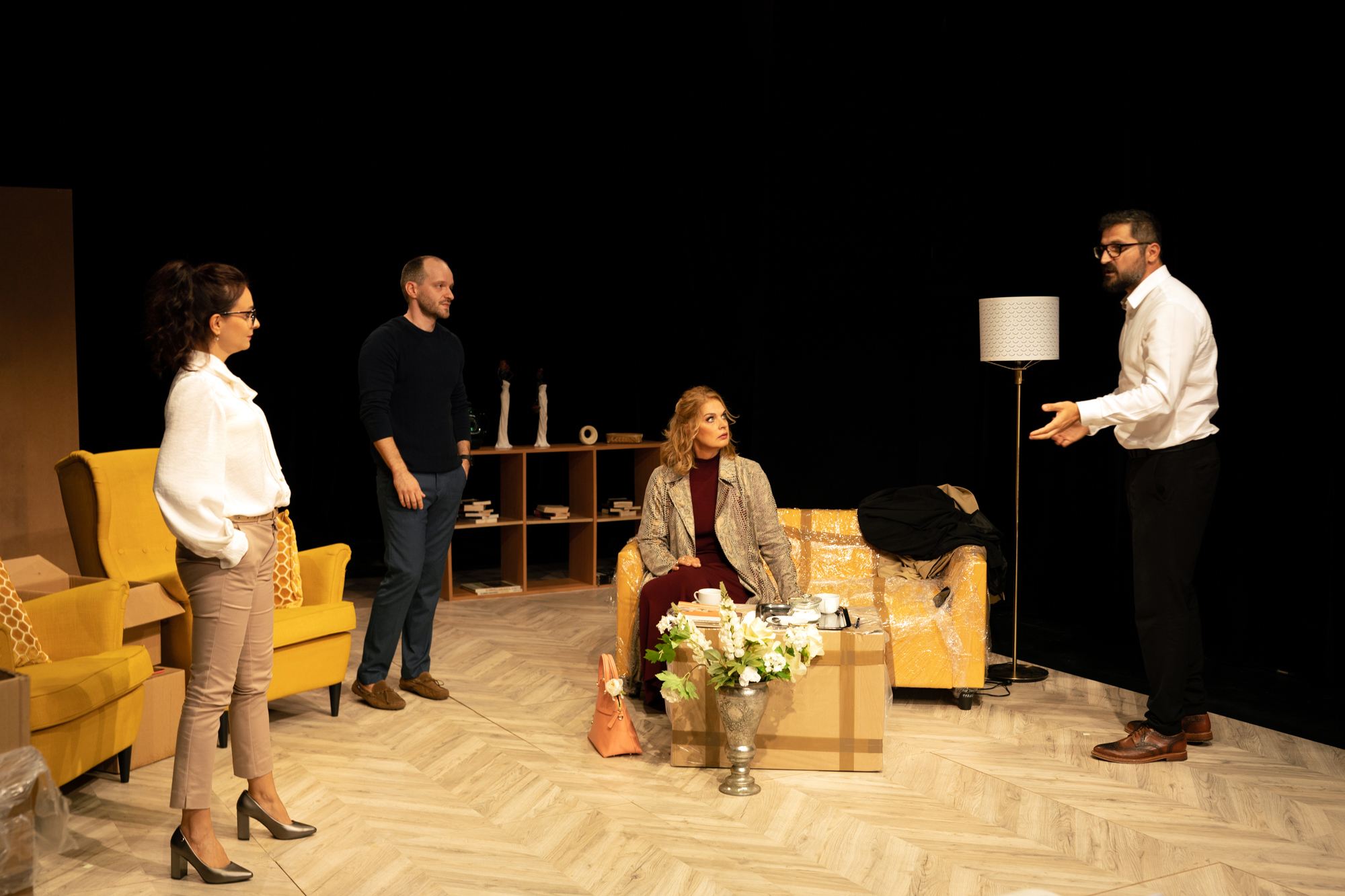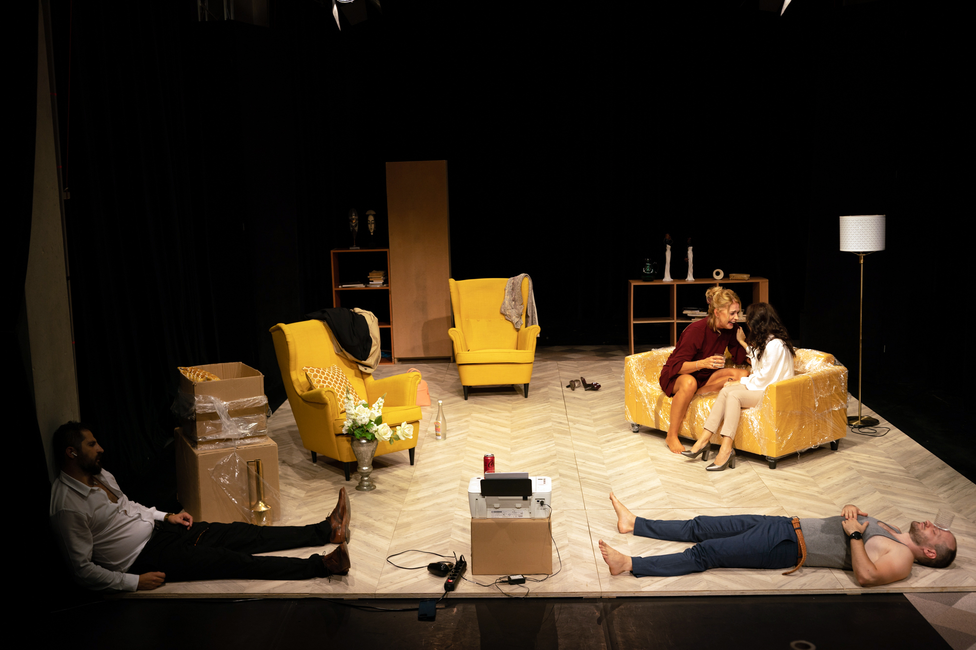 Două cupluri moderne, oglindă a multor cupluri din ziua de azi, trecând (pe patru voci distincte și complementare tipologic, pe care le veți descoperi pe parcurs) cu umor și sarcasm prin cele mai ofertante subiecte ale lumii contemporane (parenting, bullying, workoholism, burnout, dezvoltare personală, izolare, anxietate, depresie), aducând veridic fiecărei situații în care ne-am putea regăsi oricare dintre noi. Lecțiile de viață sunt predate cu meticulozitate, prin pilde și sudalme puse inteligent împreună între zâmbete de politețe și complezență și retorică verosimilă, ce urmărește cu maximum de atenție discursivă și gestuală corectitudinea pe care o impune situația, dezvăluind savuros frustrările din cuplu, rezultate din frustrările personale, în conversații moralizatoare și motivaționale delicioase, în care masculinul și femininul, atât de bine decupate și folosite, se răstoarnă și se echilibrează constant, în monolguri și alianțe temporare de gen, status ori folos argumentativ, într-o dinamică interesantă, ușor misogină la nivel discursiv și foarte alertă ca ritm narativ, în care tensiunea se acumulează continuu, stârnind adesea hohote de râs și ținând precis spectatorul în priză până la sfârșitul spectacolului.