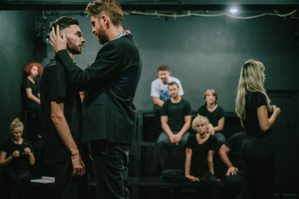 Pe acest deja înălțat altar al teatrului, noii intrați în capela în care se va oficia slujba botezului lor artistic sunt condamnați să adere brusc la un sistem de valori și credințe ce nu le aparțin, hrănind încă ego-uri crescute mari la umbra iluziei că talentul poate înlocui absolut învățarea rațională, justificând didactico-pedagogic abuzurile verbale, fizice, psihologice sau sexuale pe care profesorul le exercită asupra lor (doar pentru că poziția de putere îi permite) în corecții necesare pentru a le stimula emoționalul și potențialul artistic. Având ocazia de a-și etala calitățile profesionale ce-i califică drept actori profesioniști în scurtele și intensele scene din repetițiile pentru visul shakespearian (frumoasă și importantă paralelă a regizorului între rezultat și drumul pe care acesta l-a presupus), protagoniștii acestui spectacol se dedublează priceput, lăsându-se pradă fragilității, stângăciilor, bâlbăielilor și nesiguranțelor de tot felul cu care au învățat să jongleze atât de bine și cu care construiesc atent personajele încă nebotezate artistic ce-și așteaptă pedepsele necruțătoare de la tiran.