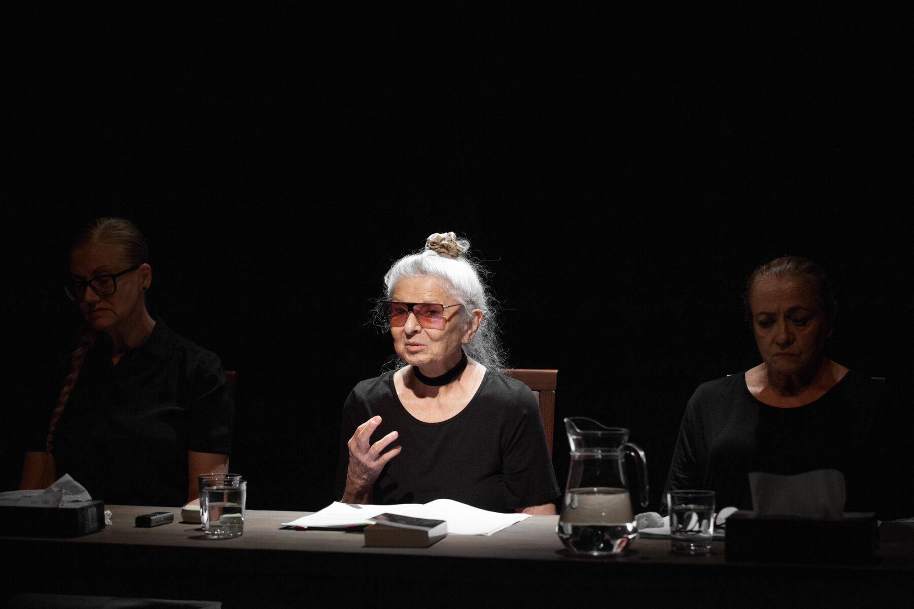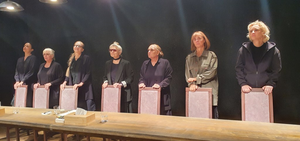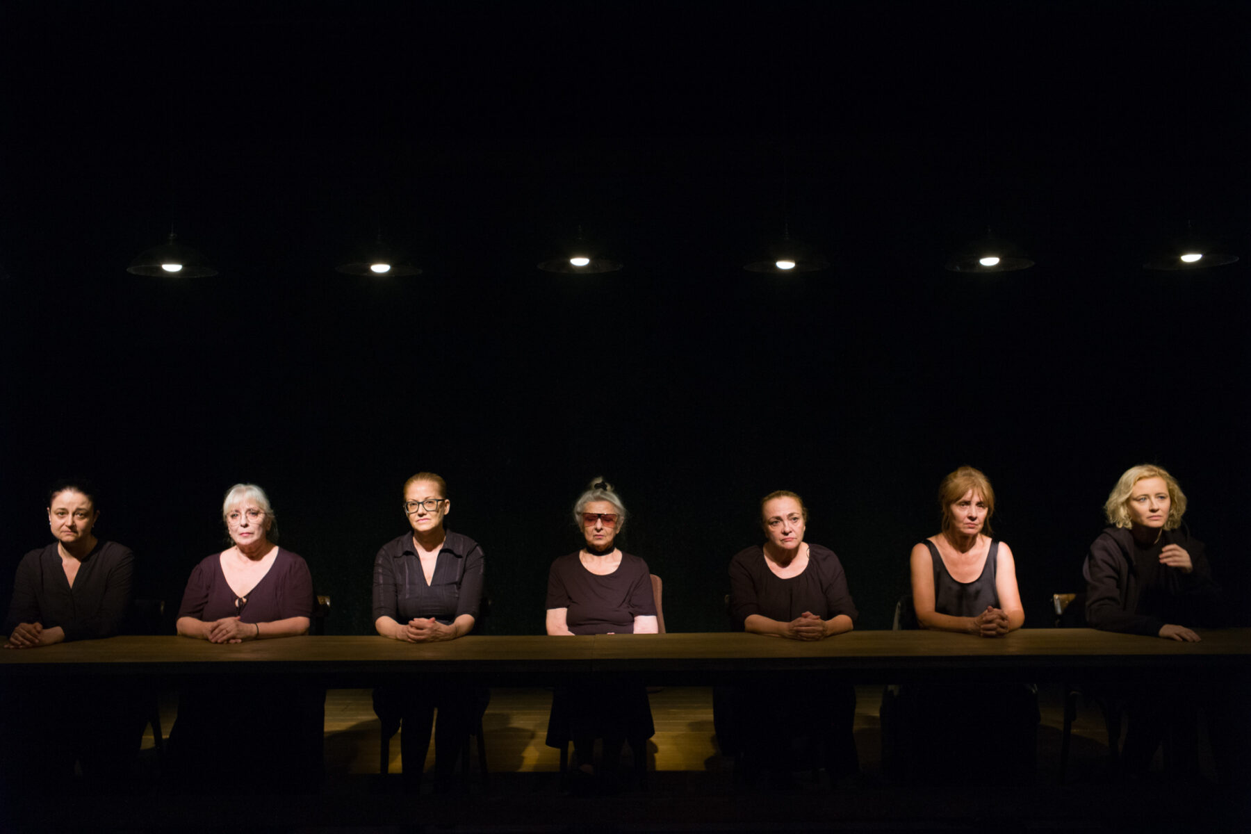 În spațiul sobru, dinadins sărac, imaginat de Nina Brumușilă ca un tablou îndoliat al unei ședințe de judecată, la masa lungă, prevăzută doar cu cele necesare pentru dezarhivarea adevărurilor și ștergerea lacrimilor, întinsă în semiîntunerric cât să i se vadă doar ospățul durerilor, luminate pe rând sub lupa memoriei, Kordonsky a aliniat mamele îndoliate, împietrite în imaginație și în amintiri, ce caută cuminți să-și explice suferința, să găsească rolul sacrificiului lor în marea schemă a absurdului în care ne este dat să trăim cu toții.