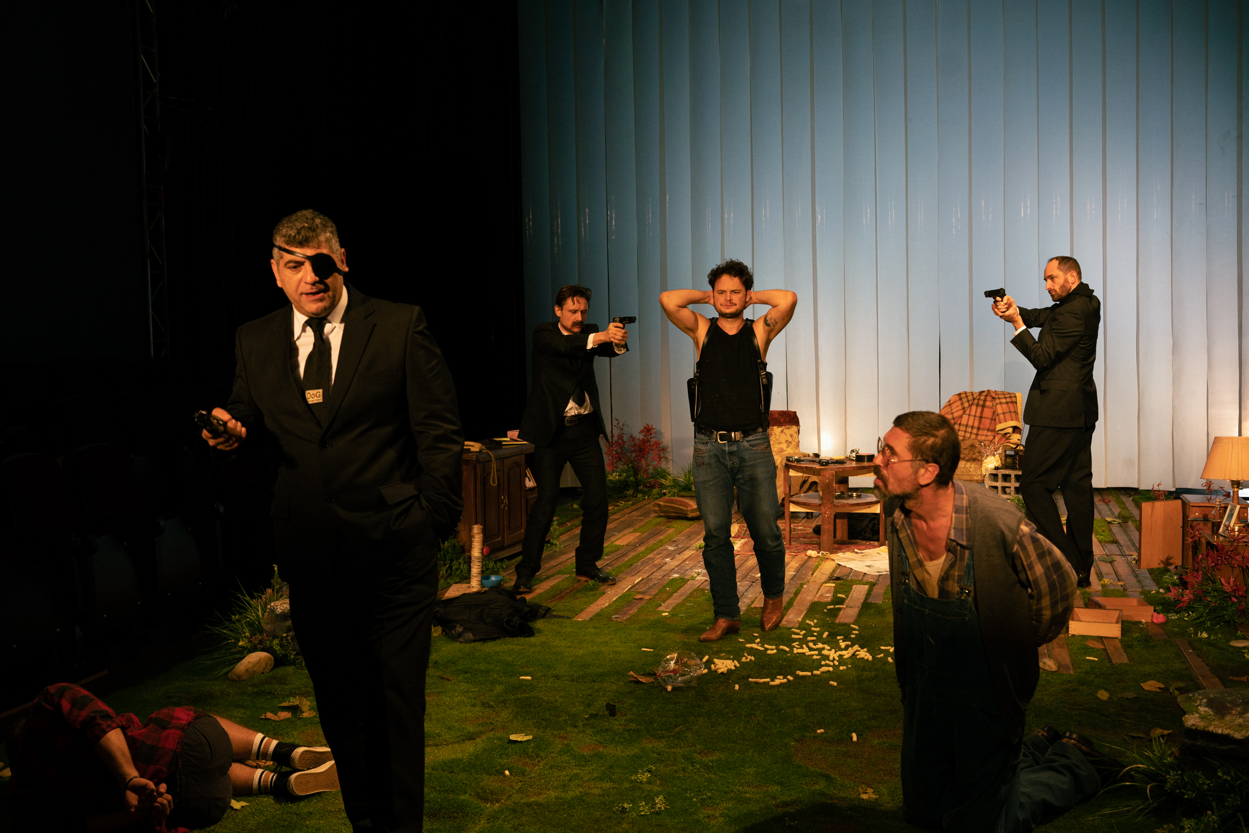 Despre cele mai serioase lucruri la modul cel mai neserios. Sau despre cele mai neserioase lucruri la modul foarte serios. Așa cum o impune subiectul unui mic text mare (ori un mare text mic) despre absurdul violenței. La modul dur, zgomotos, energic, tulburător, accelerat până la paroxism. Într-o nebunie de spectacol, o savuroasă comedie neagră cu toate ingredientele necesare pentru o gură neobișnuită de teatru proaspăt. Proaspăt tranșat, zic. Până la măruntaiele lui dramatice, deschise visceral către public pentru a scoate de acolo toată emoția cu care s-a putut pricopsi pe mațe după ce i-a digerat neobișnuitul narativ. O coborâre dintr-un cinema tip Tarantino (prin citate precise, mai ales muzicale) direct pe scândura scenei Sălii Atelier a Teatrului Mic.