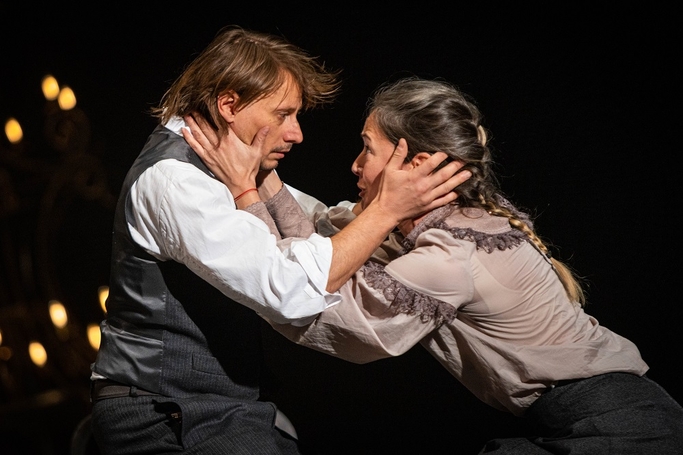 Ideal ce poate sfârși iremediabil în celula rece a unui subsolul, întemnițat vremelnic, cât să i se asigure din nou onoarea, înainte să fie purtat către ștreangul ce îl așteaptă întru împlinire la eșafod. Prilej pentru Adrian Damian de a aduce în scenă (căreia i-a fost retezat interiorul în care s-a petrecut complotul) cușca rece și simplă (excelent luminată scena!) a încarceratului prăbușit, printre gratiile căruia își va vârî insistent bastonul pentru a-l întărâta Skuratov (sub uniforma lui în al doilea rol, chiar mai ofertant, Marius Bodochi, ce-i oferă ocazia unei prelegeri sarcastice, ca din partea sistemului, asupra ideilor revoluționare), înainte să-și înfigă plină de resentimente mâinile, pentru ca mai apoi să se năpustească de-a dreptul în cușca lui cu totul, îndurerata Mare Ducesă. O Maia Morgenstern puternică și impunătoare cum o știți, în toată splendoarea doliului ei proaspăt așezat în inimă și veșminte, prin care a fost despărțită nemilos de viața de lux, între o siestă și o vizită la teatru, de criminalul pe care-l are acum în față și asupra căruia are ocazia să-și verse furia. Și cu care face chiar schimb de roluri – în și în afara gratiilor -, obținând pe rând o libertate de care niciunul dintre ei nu pare că are nevoie sau că ar încerca să o folosească, întemnițați pentru totdeauna în propriile disperări, atât de diferite și atât de asemănătoare în fața istoriei care le va consemna.