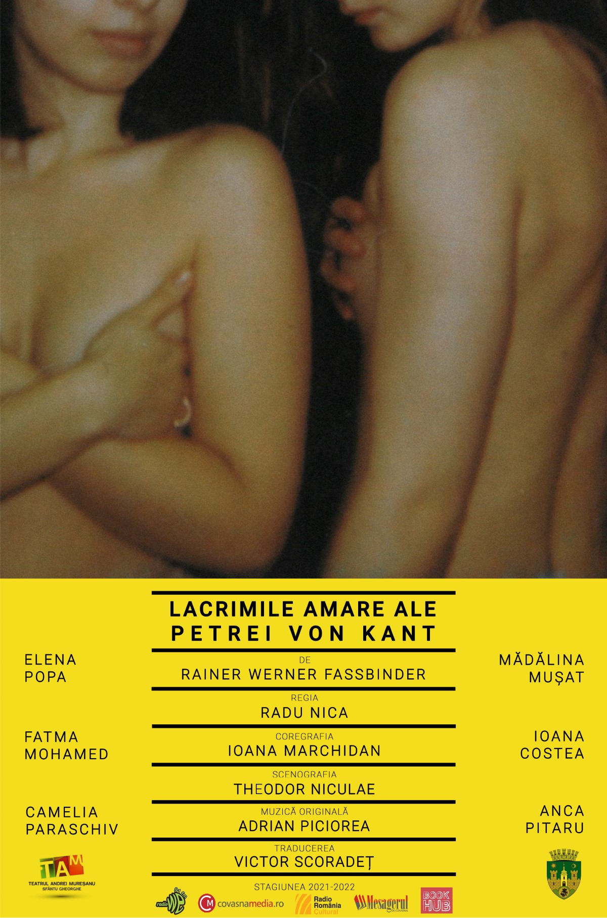 A demonstrat-o regizorul Radu Nica. Care a luat „Lacrimile amare ale Petrei von Kant” (controversata piesă autobiografică în cinci acte a lui Rainer Werner Fassbinder, pe care a și ecranizat-o în 1972), le-a șters cu grijă de pe obrazul neputințelor, cvasitoleranțelor și rușinilor rostite în scenă (la Teatrul „Andrei Mureșanu” din Sfântu-Gheorghe) și le-a mutat precis, împreună cu Ioana Marchidan, în mișcarea și gestualul celor șase actrițe – Elena Popa, Fatma Mohamed, Mădălina Musat, Anca Pitaru, Ioana Alexandrina Costea și Camelia Paraschiv – (care le-a însoțit în pași de aproape dans, până la înlocuire, cuvintele înregistrate), într-un univers al feminității „multioglindite” de scenograful Theodor Niculae și inteligent îmbrăcat sonor de Adrian Piciorea. Un fel de împuternicire a vulnerabilului și de legitimare a iubirii „ilegitime” pe care sufletul unui artist (în acest caz designer vestimentar) caută s-o metamorfozeze ca s-o înțeleagă și să-i extragă seva spre a-și hrăni creativitatea, în timp ce emoționalul, erotismul și sexualitatea, toate la limita blamabilului într-o societate destul de conservatoare a epocii cu pricina, cade iremediabil în maladiv, în obsesiv și codependențe, asortate ferm naturii sofisticate a acestei controversate Petra von Kant. O echipă solidă care desenează pertinent pereții semitransparenți ai coliviei ce va adăposti după gratiile ei, pentru o oră și ceva, zborul nepermis. Esențializat, rafinat, elegant.