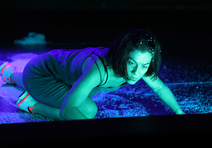 Îndoiala, o stare emoțională esențială pentru oamenii inteligenți precum Greta, este motorul întregului text dramatic al Anei Sorina Corneanu, care l-a lăsat dinadins într-o atmosferă interogativ-introspectivă în care predomină ambiguitatea, ceea ce-l face foarte ofertant pentru montarea one-woman-show-ului pe care-l presupune, atât pentru protagonistă cât și pentru regizor, cărora le rămân deschise destule căi pentru a ataca subiectul. Zsuzsánna Kovács a optat pentru o eroină destul de reținută per ansamblu, făcând din Florentina Țilea un introspector iscusit, răbdător și așezat analitic, o ființă ironică și autoironică, ce învârte abil și controlat cuțitul în cicatricile rănilor ei (și ale noastre!) sociale, dispusă să le redeschidă în fața noastră ca să ne ferească pe noi de durere, colorat răzvrătită însă fără stridențe, ceea ce face cu atât mai spectaculoase momentele ei explozive, întreținute într-un registru înalt-grav de sunetele pertinent construite de Călin Țopa pentru a-i îmbrăca emoționalul în angoase, suspansuri și atacuri de panică, ori a-i însoți mișcările coregrafice de revoltă, asumare, îmblânzire și acceptare, atent construite și deconstruite de Florin Fieroiu și luminate de Mircea Mitroi ca să-i pună în valoare lupta cu propriile umbre, cu proprii demoni, care se descătușează controlat în decorul lui Gabi Albu. Scenografa a mers pe un décor simplu în care predomină albul, inclusiv două panouri pentru proiecții, prin care jonglează inteligent cu elementele primordiale (pământul, aerul – sau lipsa lui! –, apa şi focul) compuse din lumina cu care se joacă în întregul spațiu ori în anumite zone ale lui, în funcție de nevoile narative, sau cu care îmbracă obiecte, legând-o pe Greta de rădăcini și de misterele vieții, de unde poate ridica liniștită problema dumnezeirii.