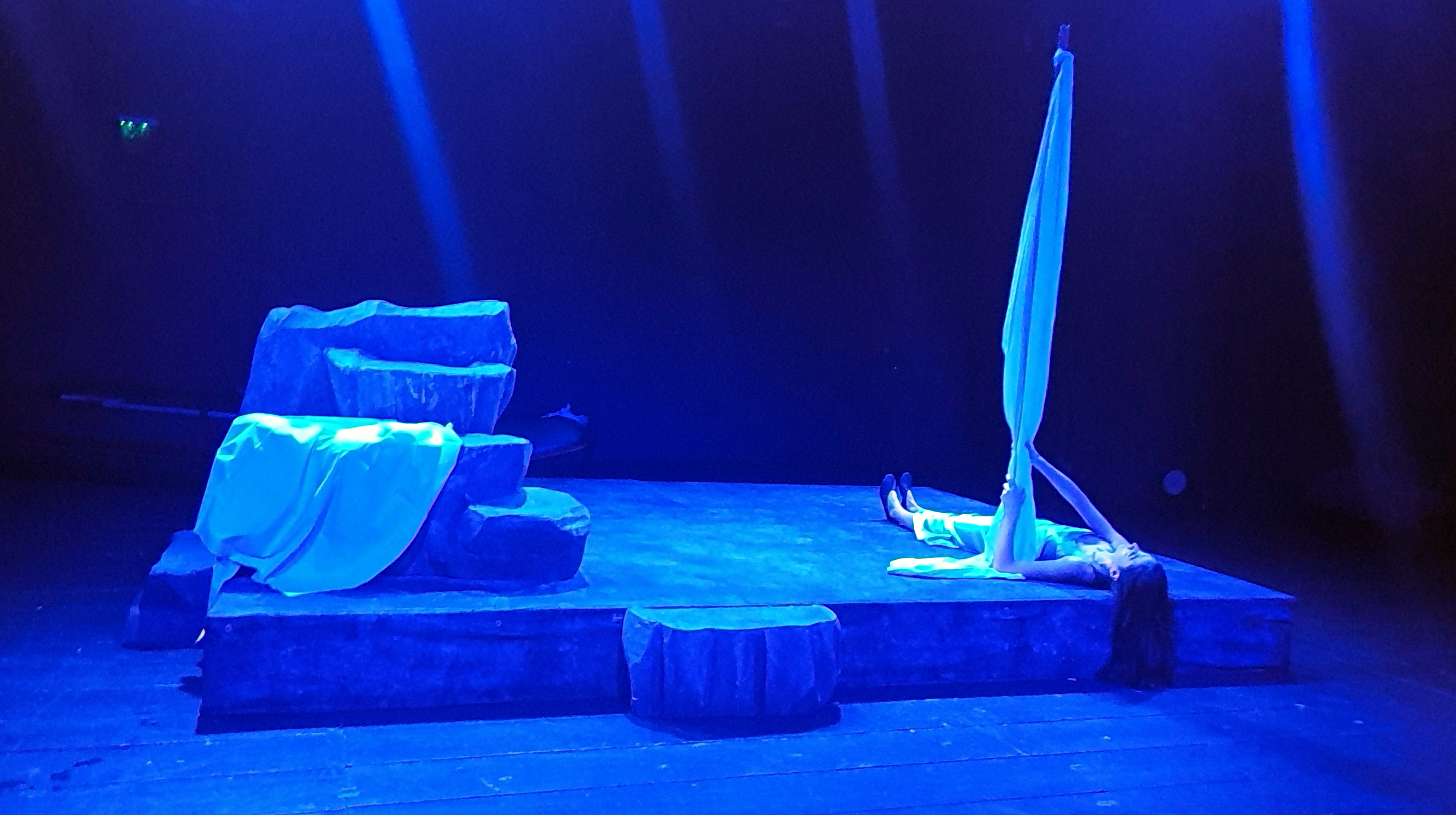 E focul despre care regizorul Andrei Măjeri vorbește atât de răspicat, că nici nu știi cum ai rezistat asfixiei după mai bine de un ceas și jumătate de respirație tăiată după respirație tăiată, țâșnite dintr-o dată din promisiunea anticului pur cu care ne așteaptă în scenă Ariadna (Lorena Luchian). În cântec trist, de sirenă (This Mortal Coil – „Song To The Siren”!), învăluită doar în lumina albastră a valurilor ce înconjoară insula pe care se trezește părăsită în urma primului naufragiu afectiv propus de spectacol în prima heroidă (așa este denumită epistola în versuri, în care se celebrează un erou sau un personaj celebru) a lui Publius Ovidius Naso, pe care eroina abandonată i-o adresează lui Tezeu (cutremurător în simplitatea mesajului său monologul cu care Lorena Luchian își articulează perfect dansul zbuciumat al durerii, candid și compulsiv în același timp). Actrița ridică în forță spectacolul și mizele lui încă de la prima verticală sub fluturările steagului alb, un S.O.S. disperat trimis către toate navele ce se depărtează de țărmurile pe care și-au uitat dinadins naufragiații dintr-un strigăt universal de ajutor al tuturor femeilor uitate pe insule ori în derivă în mijlocul mărilor emoționale în care-și pot afla sfârșitul. Un steag alb ce prevestește un final fericit pentru anunțatul război între sexe, o încercare preventivă a unei altfel de Pax Romana, o pace a zilelor noastre cu trecutul, cu tradițiile, cu diferențele de gen și cu moștenirea culturală (păstrată întocmai!), dar și cu petele aruncate de veacuri peste toată imacularea propusă, ținute la vedere în tot dansul ăsta alb, plin de sânge imaginar, împletit atent din firele tuturor Ariadnelor ce și-au ajutat Tezeii să găsească ieșirea ascunsă din labirint.