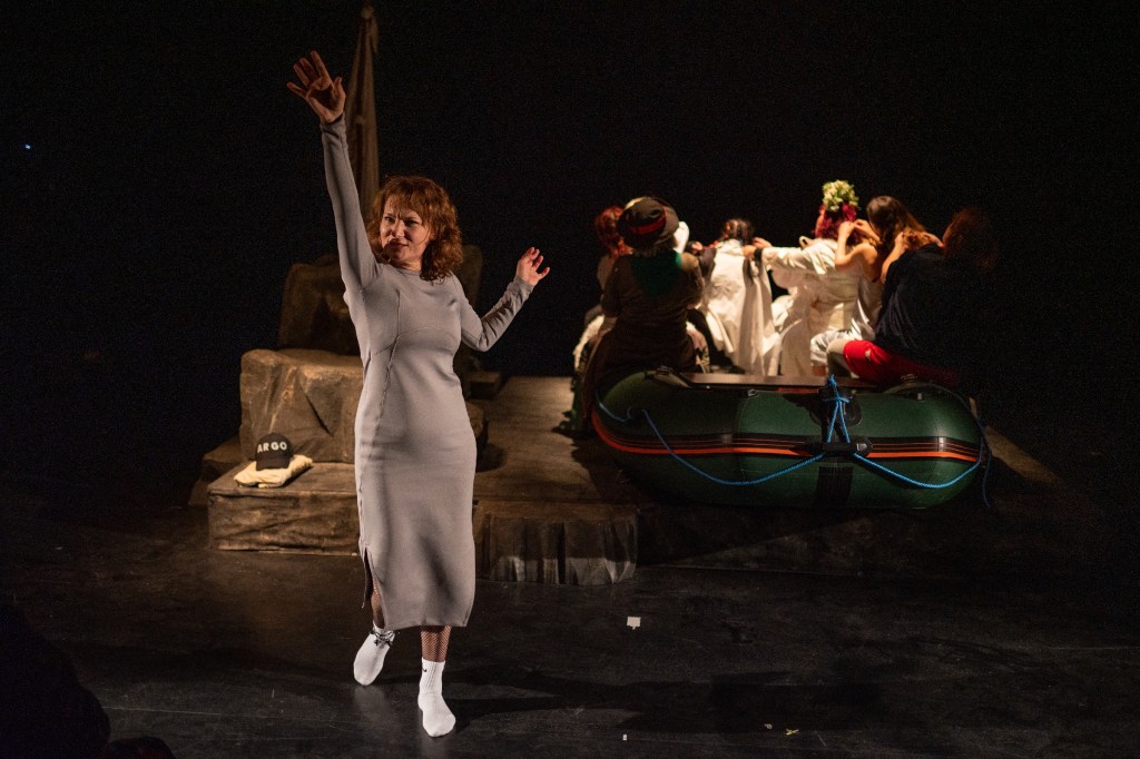 O Medee cool, cu rochie lungă casual, șosete albe și șapcă Argo (!), de sub care se dezlănțuie inedit Silvia Luca, dezvelindu-și în chip neașteptat inima îndrăgostită iremediabil de Iason, aprinsă ca focul viu de părul, de ochii, de iscusința limbii celui iubit (excelent momentul în care evocă întâlnirea și prinsoarea lor). Personaj central în mitul expediţiei lui lason şi a argonauţilor (fără de care acesta nu ar fi putut să obțină Lâna de Aur), femeia care şi-a abandonat tatăl, și-a ucis propriul frate și proprii copii, rămânând unul dintre cele mai sumbre personaje din mitologie, Medeea este o îndrăgostită înflăcărată ca orice altă îndrăgostită, furioasă pe propria ei dragoste, înconjurând cu dansul strigătelor ei de pierzanie barca eroinelor, plângând iubirea pentru un trădător, un nemernic care a făcut-o pradă de pirat, pe care grupul de sprijin, dotat acum cu veste de salvare și fluiere (!), o însoțește în furtuna interioară și o smulge de acolo, asigurându-i chiar reconcilierea cu Hipsipila, revenită în cuvinte pentru a participa la o scurtă și pertinentă dezbatere desre feminism (!).