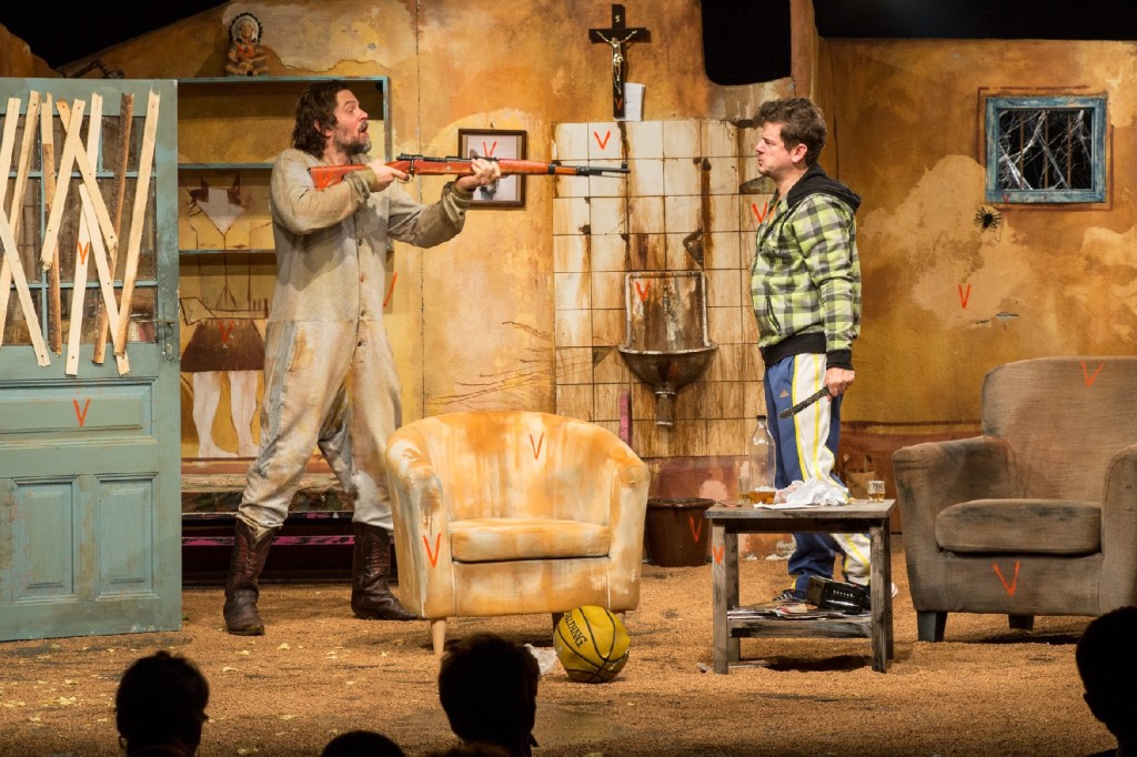 Aproape un deceniu de înjurături teatrale sublime între Florin Piersic jr. și Vlad Zamfirescu (deja celebrii frați Coleman și Valene Connor), stropite cu alcool și întreținute cu respiro-uri generoase de Ioana Calotă și Corina Dragomir (distribuite alternativ în rolul Girleen Kelleher) și arbitrate împăciuitor de Andi Vasluianu (părintele Welsh). Înșurubate de Cristi Juncu în inspirata complicitate cu scenografa Carmencita Brojboiu într-o locuință mizeră, înțesată de mobile vechi și stinghii care-i susțin tocăria să nu se prăbușească împreună cu pereții scorojiți ce mai păstrează încă desenele murale, parcă dintr-o altă viață în care totul era nou și viu, astăzi o cușcă îmbâcsită pentru sufletele neconsolate legate în lanțurile neșanselor de tot felul și hrănite sporadic cu triste amintiri mistificate și ciozvârte de hoituri care le populează tot mai des bruma de social care le-a mai rămas. Un spațiu claustrant în care domnesc praful, rugina, igrasia și pânzele de păianjen, ce acoperă ferm fiece cotlon al acestui interior dezolant, plin de obiecte inscripționate la vedere cu inițiala V (de la Valene, cel care-și revendică din vârful cariocii tot ceea ce mișcă în acest spațiu).