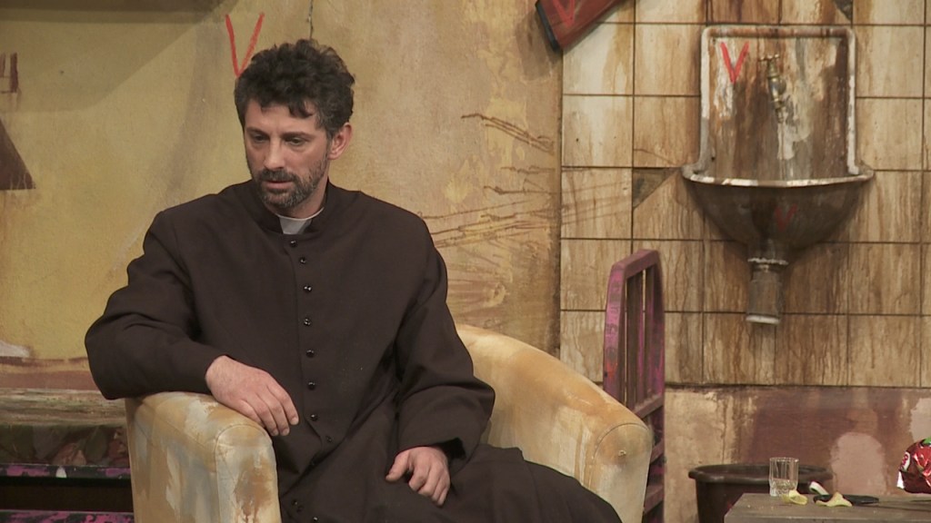 Între ei un foarte bun Andi Vasluianu, reținut (mai ales de băutură!) în rolul preotului căruia-i joacă intenționat stângaci emoțiile, marele „espert la trăitu singur” cum îl caracterizează Coleman, un tip prea sever cu sine care bagă frica în sticlele de whisky până i se blegește credința, dar nu cât să profite de bieții copilași, ceea ce pare a-i asigura un avantaj „în fața la jumate din popii din Irlanda”, personajul care se va dovedi cel mai greu de salvat.