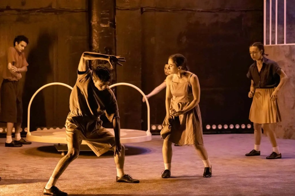 Șase inimi cu susjosurile ba sus, ba jos, repetând în balansoarul dramatic mișcările ritmice ce-i pregătesc pentru scena vieții, marele loc de joacă din care vor mereu să se întoarcă (excelente schimburile de registru muzical și de ecleraj care însoțesc alternarea dansurilor fascinante ale drumurilor împreună înainte-înapoi, ce punctează aproape fotografic câte un reper pe harta maturizării lor, prin evocările alb-negru-sepia). Șase copii jonglând cu pricepere (cu ajutorul corpurilor lor fizice cu infinite posibilități de exprimare) printre amintiri prinse în fascinante tablouri teatral-coregrafice parcă între juliturile genunchilor frecați de asfalt în căderea bicicletei cu roată invizibilă, puțin înainte să descopere plăcerea de a rupe, eroic, coaja bubei în timpul următoarei curse de biciclete, cătând să amelioreze din groaza privitului către rana deschisă și să prevină leșinul la vederea sângelui numai pentru tesarea anduranței și rezistenței la propria durere și la zeflemeaua altora, petrecând atent elasticul, întins tot mai mirat, în jurul gleznelor neastâmpărate ce se călesc înainte de o nouă ridicare de ștachetă (foarte puternic sincronul!) odată cu înaintarea în joc, către genunchi și apoi către coapse, descoperite într-o zi într-o altă partidă dintr-un alt joc din care inocența se va fi șters pentru totdeauna.