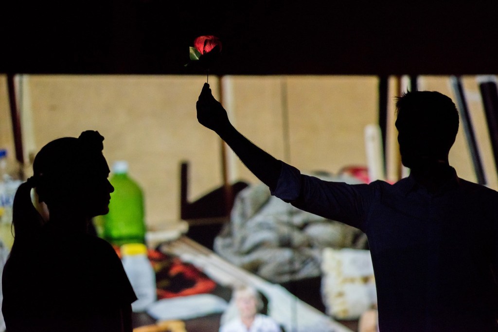 Ridicând mănușa aruncată de contemporan în duelul pentru buna re(prezentare) a problemei asistaților statului, regizoarea aliniază întreaga distribuție pentru a prezenta punctele de vedere vehiculate în social cu privire la acești „paraziți cu drept de vot“, folosindu-se inteligent în acest prolog de împletirea proverbialului românesc cu exemple de educație precară, ignoranță și patimă din care se nasc prostia, ura și rasismul pe rețelele sociale, confirmate și validate prin reacții și emoticoane și regăsite mai apoi în mentalul tuturor, după ce au fost preluate și în discursurile politicienilor și repetate până devin stigmat, sub acoperirea unei toleranțe anume inventate (excelent colindul sarcastic „Domn, domn, să-nălţăm!“ cu care-și însoțește comentariul). Infractori, lepre, jigodii, ploșnițe, paraziți, bestii primitive (dați repede drumul la neonaziști să facem oleacă de curățenie în ograda plină de trândavi!), oamenii ăștia leneși sunt chestionați dramatic spre a ne smulge empatia ce se poate aduna din cioburile oglinzii sparte pusă în fața intoleranțelor noastre pentru a le înțelege repulsivul și monstruosul și a evita să-i ducem în continuare direct la spânzurătoare, ca-n povestea lui Creangă, numai pentru că sunt prea săraci.