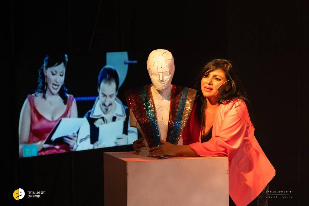 Încheie în forță prima parte a spectacolului Irina Petrovna Solomon Romanov, personajul fermecătoarei Ecaterina Elena Lupu, fiică de patron evazionist de firmă de cozonaci, sponsor al evenimentelor artistice locale, artistă mediocră, deloc împăcată cu umila condiție de imitatoare unu la unu a Marinei Voica, care-și ratează inclusiv propria sinucidere (!). Excelent conduce actrița episodul halucinației Ave Marina cu arhangheli (!), în care, sprijinită viguros în personajele încredințate lui Lucian Iftime și Mirela Păun (tatăl, respectiv dirijoarea de la Palatul Copiilor, cu neg și apucături discreționare cu tot) demonstrează din plin toate calitățile cu care a fost din belșug binecuvântată. Deși nu reușește să rupă publicul cu acuta pregătită (!), ea lovește din plin în inima lipsei de soluții alternative pe care le au artiștii care se pierd pe drum, prea narcisiști să-și pună capăt zilelor de strălucire: firma de evenimente. Care le asigură la nevoie traiul chiar și celor mai netalentați dintre ei, dacă sunt dispuși să renunțe la marele vis.