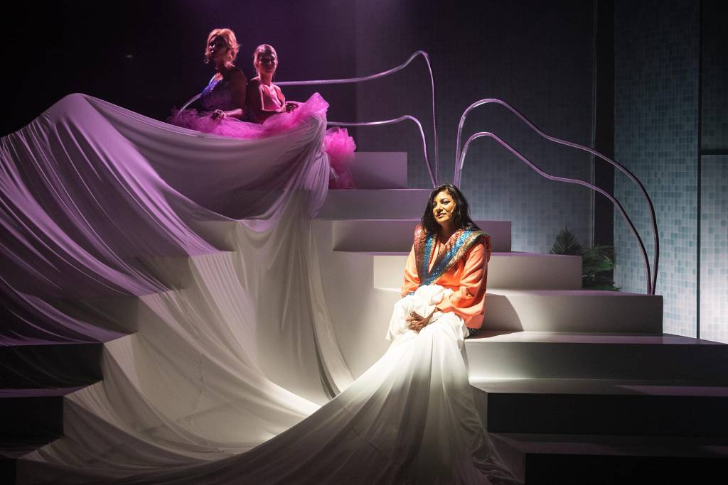 În toiul revoltelor vedetelor angajate, ce vor să părăsească toate Bienala, își face apariția Adriana, personajul unei puternice Luiza Martinescu care va prelua și va menține sus ștacheta ridicată de Ștefan Mihai, atât dramaticului cât și muzicalului. Cu această scenă, actrița, înarmată cu un text excelent pe care-l explorează și îl exploatează cu fler, prezintă alt tip de vulnerabilitate care le este dat să o trăiască artiștilor: sacrificiile din viața personală. Pe o scenă mult mai mică, a propriei lor vieți. După ce a repetat atent bucăți de trecut imaginar prevăzute cu viitor plauzibil și bucăți consistente de prezent continuu, ea strălucește în scena în care își terfelește cu propria voce demnitatea, zâmbind amar de sub posibilitatea propriei nunți (în fața uriașei trene de mireasă cu care colegele ei de scenă acoperă scările).