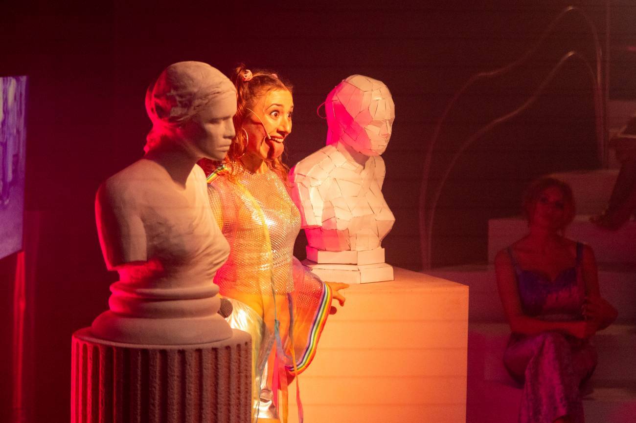 Tablouri teatrale pertinente decupate din acest album de nostalgii vivante, conduse autoritar îndeaproape de excelenta Mirela Pană (Mireille și nu numai!), amfitrionul acestei aventuri back to the future, responsabilă cu buna funcționare a pavilionului românesc de la expoziția cu pricina, care include informarea, organizarea, pregătirea, ghidarea, jurizarea, amendarea, inventarul tuturor vocilor și emoțiilor pe care le provoacă și de care se înconjoară. Curatoare de artă contemporană, fostă cântăreață în tinerețe (care a rămas toată viața marcată de participarea la Festivalul de la Mamaia în urmă cu 25 de ani), Mireille Plume a câștigat selecția pentru a reprezenta România la Bienala de Artă din Veneția cu instalația ei performativă numită „10 lucruri pe care le-am pierdut la Festivalul Mamaia” și se ambiționează să-și poarte către succes performerii închiși în expoziție pentru șase luni ca să retrăiască amintiri (reale sau ficționale) din istoria muzicii ușoare românești despre vedete consacrate dar și despre destine artistice mici, neîmplinite, cu care i-a fost pavat drumul atât de lung de până acum.
