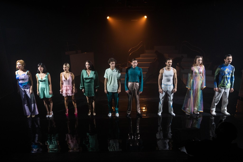 E un joc al hazardului în care fragilitatea și puterea stau la aceeași masă. Cred că e un deziderat al regizorilor Gabriel Sandu și Elena Morar, care și-au ales foarte atent distribuția, toți actori capabili să performeze la ambele extreme, dar să se și așeze, complementar, pe diferite trepte ale expunerii posibilităților de exprimare ale acestora (atent lucrate tipologiile personajelor, și în scriitură și în interpretare, dar și în așezarea pe tipologiile vocilor distincte cărora le dau din nou glas), asigurând emoționalul solid în scene solo dar și în ansamblu, care se completează ingenios unele pe altele la toate nivelurile: vocal (rostire și muzical, minunat decupate), mișcare, sound și vibe (live, înregistrări, multimedia), într-un ritm înnebunitor în care, deși pare uneori că nu se poate opri cadența de galop (minunat evidențiată în scenele de grup), se găsește mereu o ușă care va duce negreșit către cel mai tandru confesional.