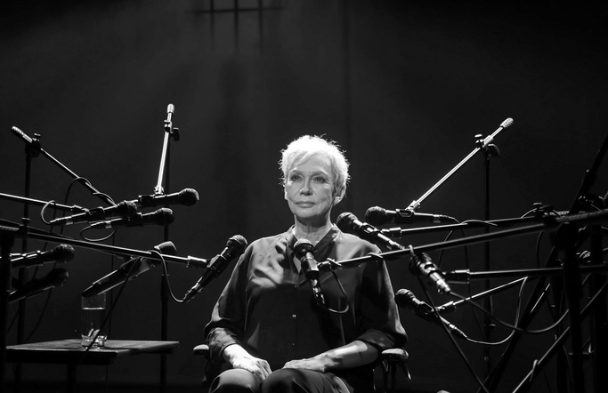 Cea mai îngrozitoare aritmetică în care se pot strânge cu milioanele secunde, minute, ore, zile, luni și chiar ani întregi din cea mai umilă izolare. Încercat de un Dumnezeu care știe, ca un dar dintr-o incredibilă șansă la mântuire. Așa mi s-a arătat în fața ochilor minții și sufletului cea mai nouă premieră a Naționalului bucureștean. În Sala Atelier, unde m-am întâlnit în semiîntuneric cu umbra unei femei ce aștepta cuminte să-și facă ascultată povestea, înconjurată de stative cu zeci de microfoane, augmentate în umbră ca niște siluete ale unei uriașe orchestre cu instrumente de percuție în așteptarea ciocnirii, lovirilor și izbiturilor ce o vor însoți răbdătoare urmând să-i smulgă sunetele la vorbitor preț de o oră și ceva.