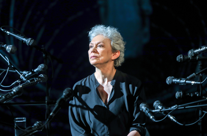 Cea mai îngrozitoare aritmetică în care se pot strânge cu milioanele secunde, minute, ore, zile, luni și chiar ani întregi din cea mai umilă izolare. Încercat de un Dumnezeu care știe, ca un dar dintr-o incredibilă șansă la mântuire. Așa mi s-a arătat în fața ochilor minții și sufletului cea mai nouă premieră a Naționalului bucureștean. În Sala Atelier, unde m-am întâlnit în semiîntuneric cu umbra unei femei ce aștepta cuminte să-și facă ascultată povestea, înconjurată de stative cu zeci de microfoane, augmentate în umbră ca niște siluete ale unei uriașe orchestre cu instrumente de percuție în așteptarea ciocnirii, lovirilor și izbiturilor ce o vor însoți răbdătoare urmând să-i smulgă sunetele la vorbitor preț de o oră și ceva.
