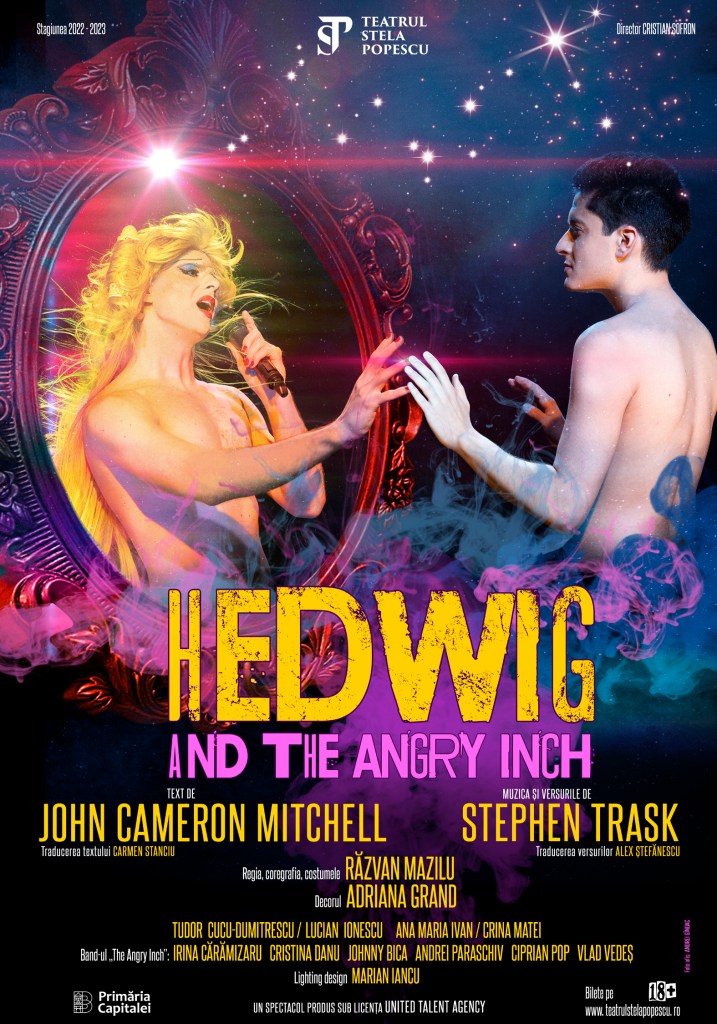 Un inch pe care chirurgia muzical-plastică și dramatic-reparatorie îl poate transforma, în mâna unui magician, în cel mai fascinant teatral. „Hedwig and The Angry Inch”. Poate cea mai frumoasă montare care i-ar fi putut fi inventată textului lui John Cameron Mitchell (pe muzica și versurile lui Stephen Trask, excelent traduse de Alex Ștefănescu) pentru un spectacular care lipsește cu desăvârșire din peisajul nostru teatral. De care se face absolut vinovat Răzvan Mazilu, desăvârșitorul acestei bijuterii teatrale aTeatrului „Stela Popescu”, numai bună de prins de reverul hainei (încă) neconvenționalului nostru cultural.