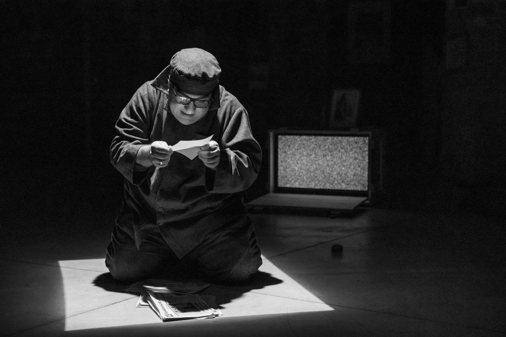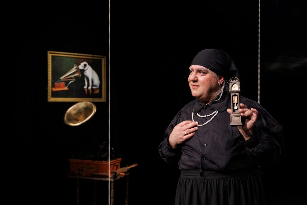 Un drum inițiatic parcurs demn de un vizionar care se respectă, dând valoare aproape sacră straielor ei stranii de tanti-travestit, aproape călugărești, cărora le învârte priceput poalele prin tot spațiul de joc (extrem de solicitant rolul și la nivel de mișcare, foarte bine dirijată de Alina Petrică, unde actorul, în ciuda unui fizic robust, se dovedește uluitor de flexibil și adesea ușor ca un fulg, plimbându-și cu candoare tiptilul pe claviatura strecurată deștept de Cezar Antal sub tălpile lui neobosite, între capetele acordurilor conclusive pe care burduful acordeonului nu uită să le sloboadă prin fiecare ancie la începutul și sfârșitul frazelor muzicale, fixând în urechea sufletului un spațiu și un timp al poveștii.