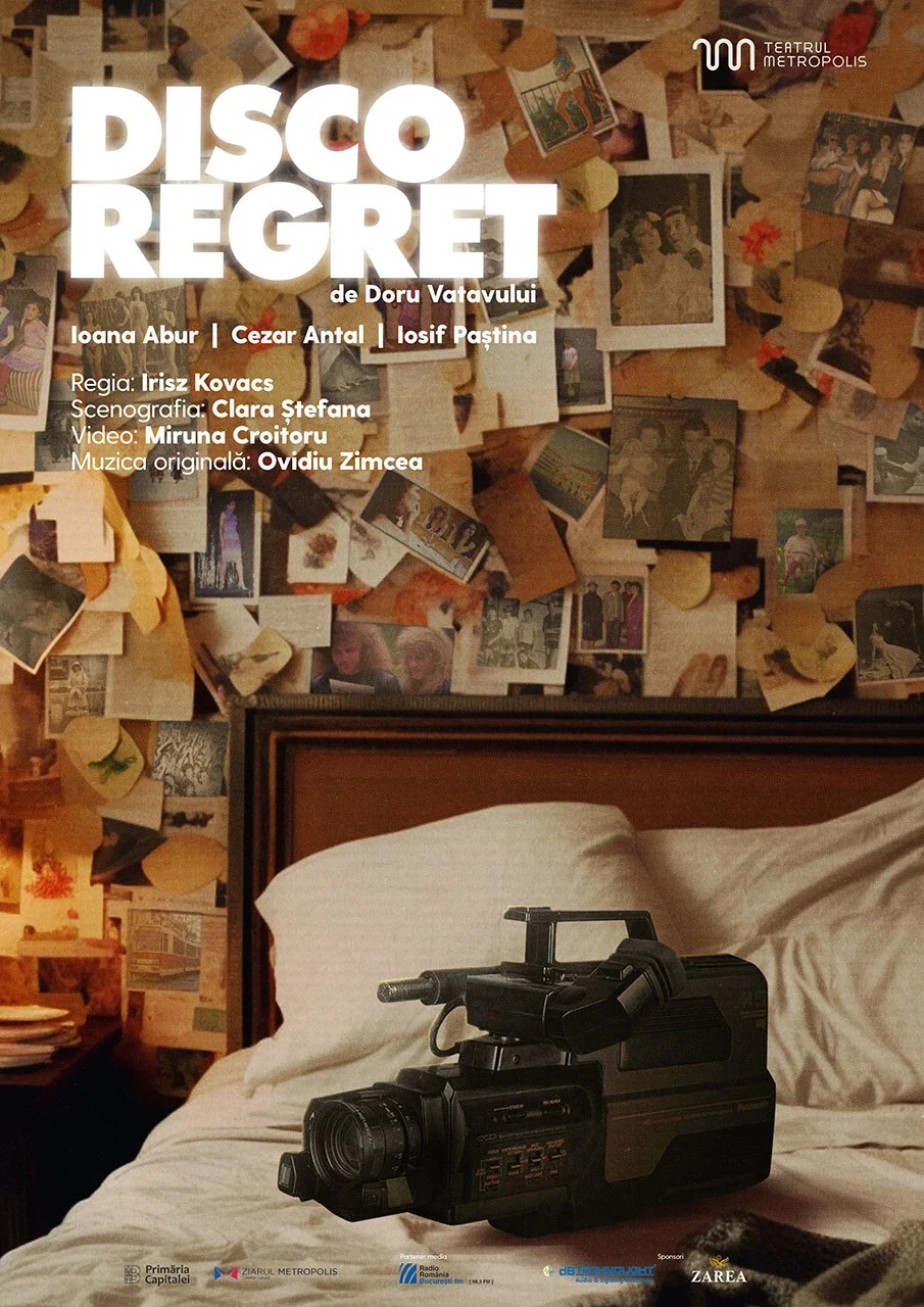 Este cazul cuplurilor cuminți cum este și cel din piesa „Disco regret” a lui Doru Vatavului, montată de Irisz Kovacs pe scena Sălii Mici a Teatrului Metropolis, un spectacol mic și intim, numai bun de văzut într-o seară tihnită de evadare prin teatru, o poezie fermecătoare despre rutina instalată între un el și o ea, cu o istorie aproape tandră de nepriceperi și acceptări ce s-au așezat docile unele după altele în contextul unui acasă și au reușit să le sudeze pe nesimțite relația, punând bazele unei familii de care se îngrijesc mai departe conștiincioși pentru a-i asigura bunăstarea, confirmându-și astfel maturizarea și sperând la mântuirea sufletelor, lăsând în seama odraslei speranța la o viață mai bună și mai neplictisitoare în care va trăi fericirea pe care părinții nu au apucat-o.