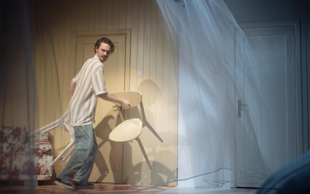Filmul lui Toni, de altfel parte din procesul lui de recuperare emoțională (un pretext pentru crearea unui vlog, prin intermediul căruia să-și transmită mesajele către fosta lui soție, sperând la vindecare, dacă nu chiar la împăcare), scotocește abil prin încrederea de sine și prin biografia familiei, parcă anume căutând după gena regretului și traumele altora, aidoma cu cele ale lui (excelentă ideea de a împărți în două scena, ce găzduiește două camere în oglindă, a lui Toni și a părinților, despărțite de un glasvand), pornind ca din întâmplare de la o cutie cu fotografii vechi, din tinerețea părinților Luminița și Alin, treziți brusc protagoniști în propria viață în care pare că joacă demult roluri secundare, descoperind cu mirare episoade pe care n-au apucat să le trăiască la adevăratul lor potențial și care, cine știe, poate le-ar fi putut schimba tuturor firul poveștii. Ioana Abur și Cezar Antal reușesc să construiască solid (fiecare, dar și împreună, dezvoltând o foarte bună relație pe scenă) istoria cuplului din istoriile personale abandonate în momentul când au început s-o scrie împreună pe cea nouă, confruntați acum brusc cu realitățile trecutului fiecăruia despre care credeau (sau poate chiar sperau) că s-au șters din memoria afectivă, contopindu-se în emoționalul familiei.