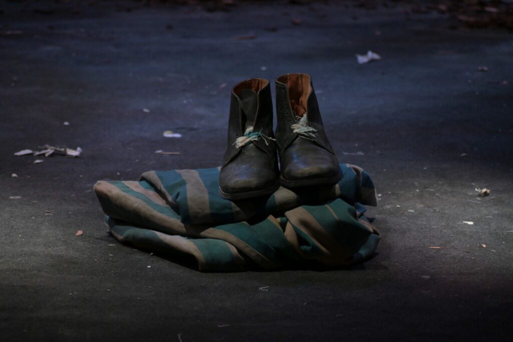Lipit speriat de al patrulea perete, simți cum lanțurile încep să se strângă încet în jurul mirării tale, așezată cuminte în fotoliul din sala „Iosif Naghiu” a Teatrului Dramaturgilor Români, în timp ce în ceafă persistă parcă răsuflarea unui soldat nazist, cu țeava rece a puștii opintită între omoplații tăi încordați, încă înainte de începerea spectacolului, care te obligă să stai cu ochii țintiți către ororile ce se vor revela pe scenă.