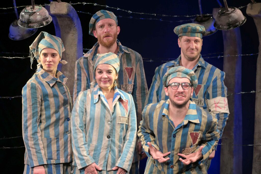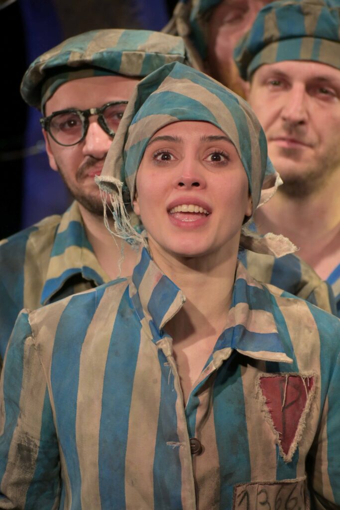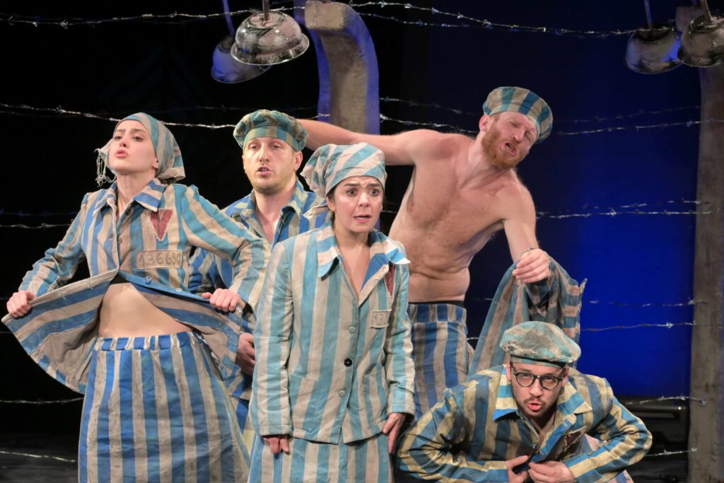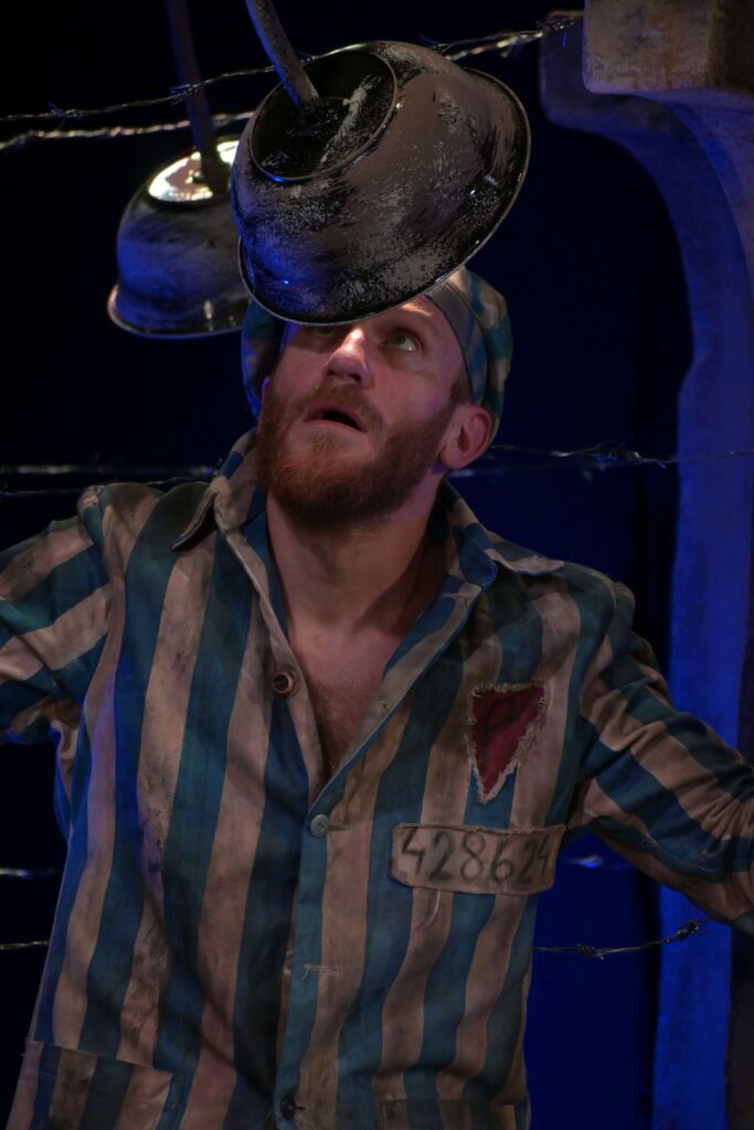 Reduși la cifrele înșiruite trist în numere de câte șase digiți, tatuate în locul identităților lor după un cod de tristă amintire, cei cinci se creează și se recreează, din nou și din nou, nu doar pentru amuzamentul comandantului, dar parcă și pentru câte o mică izbăvire din greaua și mult prea încercata lor cale către mântuire, reușind câteva momente de salvare prin iluzie, care-i scoate vremelnic din mizeria existențială în care se zbat, chiar dacă rămân, intenționat și fascinant, cu poalele agățate în noroaiele ei. Aici este de fapt reglajul fin al spectacolului, personajele din poveștile Decameronului reușind să-ți perinde prin fața ochilor, aproape nu se știe cum (adică fără legătură directă cu subiectele abordate în scenetele lor din sfera commedia dell’arte), tot felul de oameni tineri care ar mai putea să râdă, să danseze ori să iubească în libertate multă vreme de aici înainte, dacă n-ar fi condamnați fără șansă la dispariția prin istovire pe scenă, ca niște deportați apți de muncă silnică și căzniți pe potrivă în condiții inumane, pregătindu-se pentru un simbolic ultim drum al vieții către camerele de gazare, ascunse probabil undeva în întunericul culiselor după dușurile ruginite. Aproape că vezi după sârma ghimpată privirile înspăimântate ale bătrânilor și copiilor de care au fost despărțiți (excelentă ideea de a inventaria, într-o scenă, câteva dintre numele rudelor la care personajele nu mai au acces) și care-și vor găsi în alt chip sfârșitul pentru că nu sunt apți de muncă, rămânând împreună cu tine simpli spectatori în afara poveștii (ca la un îngrozitor film documentar despre al doilea război mondial, ce încă sperăm că este doar o proastă ficțiune) la ororile perindate prin fața ochilor de acești oropsiți slujbași ai scenei.