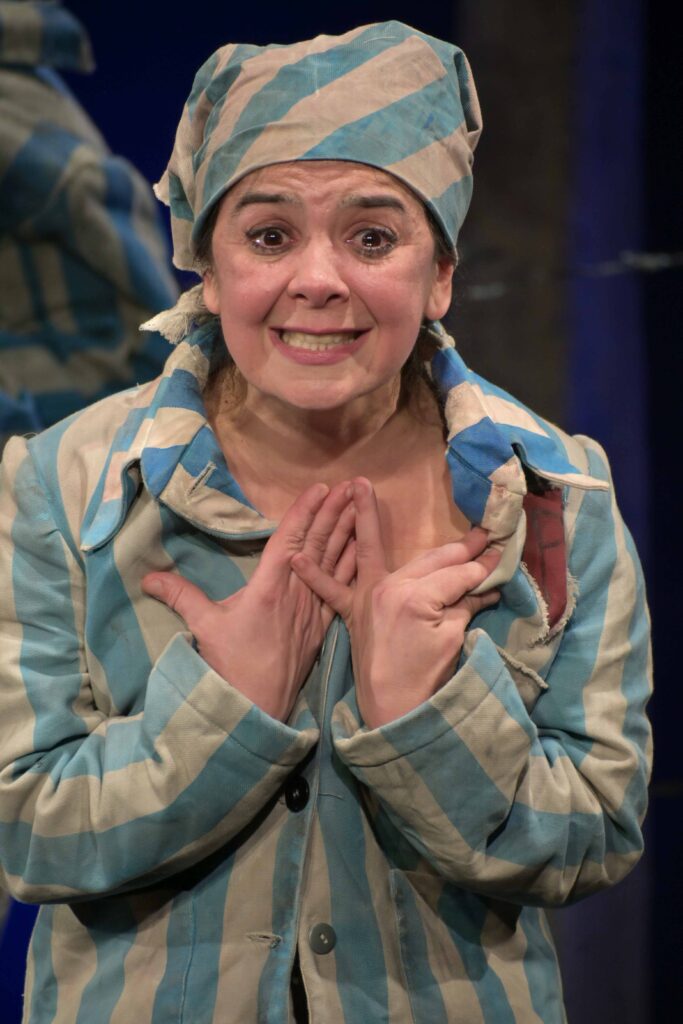 Claudia Vasile marchează, fără disonanțe, în zona extremă a femininului dulce-firav, un lacrimogen foarte bine asumat, câtuși de puțin patetic (este și cea mai expusă către dezonoare), peste care intervine mereu la timp cu accente sarcastice, luând peste picior comandantul prin simulări pseudosexuale, aproape obraznice, lăsând să se vadă uneori furia adunată înăuntru. O furie senzațional sprijinită de Ioana Calotă, cel mai important partener de suferință, în sarcina căreia cade feminitatea privită dinspre celălalt capăt, al puterii naturale asupra bărbatului printr-o uluitoare forță de seducție, o putere magnetică de care dă dovadă atât ca actriță, cât și ca femeie, prin care se face respectată, adorată, iubită. Ea conduce categoric jocul în scenă de la început până la sfârșit, solid, asumat, lucid, alternând perfect blândețea cu asprimile, inocența cu frivolul, reținerile cu exuberanța, senzualitatea cu repulsivul, eleganța cu îngălarea, compromisurile cu neclintirile, dozând perfect energiile tuturor, atrași și scoși la timp din joc nu doar prin autoritatea personajului (ea este șefa trupei de actori închiși, de altfel și singura purtătoare de nume din tot grupul, autoritate de necontestat a deținuților și a spectacolului lor), dar și prin înălțimea interpretării care o așează impozant în centrul montării chiar și acolo unde personajul/personajele ei primesc planul secund. Ea se mișcă protectiv printre colegii ei, se extrage imperial din grup și se repliază de câte ori e nevoie, conducând și sprijinind deopotrivă prin rostire, gestual, ubicuitate și infinită empatie de după groaza stăpânită din privirea sticloasă, ce nu se sfiește să se înconjoare adesea de lacrimi pe care reușește să le țină magistral în coada ochiului, în timp ce burlescul și grotescul din textul renascentist (ce înfierează moravurile societății), tot comicul cu tușe groase în care se îmbracă acest spectacol se dezvoltă savuros, demonstrativ, sub calda ei oblăduire.