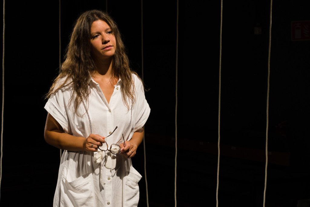 Sforile paralele care închid cușca spre care privim, atârnate metaforic de tavan pe cele trei laterale către public, ușor de îndepărtat în ingenioasa soluție scenografică pe care Ioana Pashca a găsit-o întru delimitarea spațiului de joc la schimbarea convenției (când spațiul casnic devine un spațiu exterior, iar scheletul alb, necapitonat, pe care doar pernele îl fixează ca piesă de mobiler, singura de altfel din scenă, devine lesne bancă în parcul în care suntem mutați), dar și a celor două discursuri dramatice pe care spectacolul le conține și pe care le aduce, simplu și pertinent, la un numitor comun, reușesc să creeze suficient de mult înăuntru și în afară. Nu doar vizual (cușca se va deschide și ne va conține în cele din urmă pe toți), ci tocmai pentru ca sălbaticul propus auditoriului să ni se adreseze inteligent, fără ofensă, fiecăruia dintre noi, și ca exponat socio-familial atent extras din societate, numai bun de studiat în grădina aproape zoologică în care ne recunoaștem, trăim și luptăm cu toții pentru supraviețuire, devorându-ne conștient și inconștient unul pe altul, și ca invitație pentru o adâncă sondare interioară după argumentele de care au nevoie nedumeririle, surpriza și repulsivul ce trebuie domolite spre a obține indulgența cu care este nevoie să fie primită a doua parte a spectacolului, mult mai dură, când fiara din noi se eliberează și se dezlănțuie, mușcă, urlă, ucide (!).