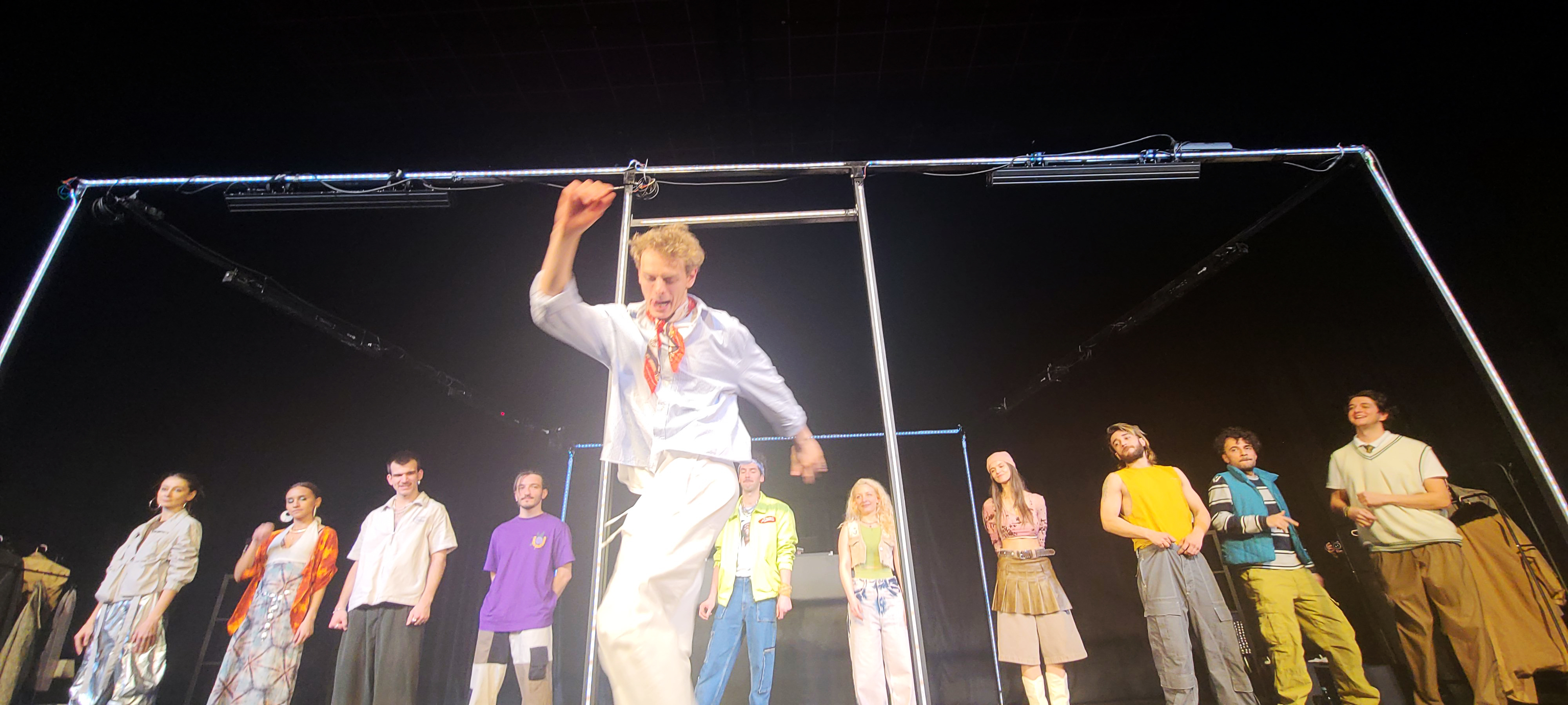 Sau 11 tineri talentați, înmulțit cu 86 de miliarde de neuroni (câți există în creierul unui adolescent), cu foarte mult curaj și fără nicio limită, care fac toate conexiunile necesare ca să ne strige verde-n față cele mai nerostite adevăruri, la ora la care între generații se ridică amenințător celebra graniță de care ne plângem cu toții, într-o explozie de bucurie și emoții tulburătoare, ne(Recomandat!) pentru amatorii de lacrimi.