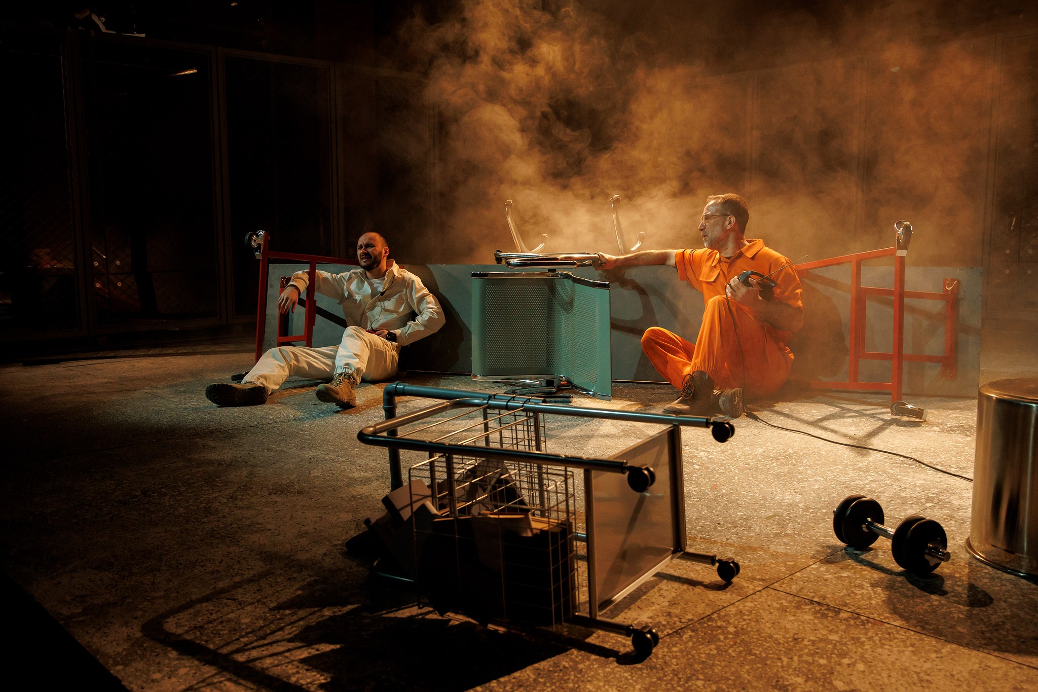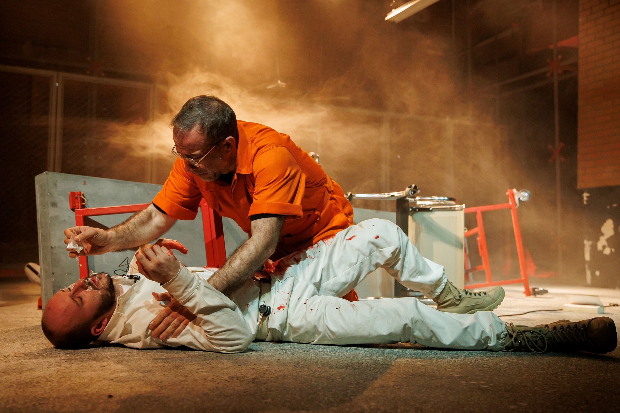 Cealaltă, a puterii (fie ea și prost înțeleasă), este oglinda pusă strategic în mâna lui Jerry, gardianul închisorii care i-o învârte abil în jurul celor mai bine ticluite lingușiri, menite să-i valideze faptele penale și să-l reconfirme moral față de sine însuși. Un Costi Apostol blând, atent și precaut, care exploatează minuțios emoționalul pe care-l intuiește în Henry sub armura lui de băiat rău (ce nu pare să i se potrivească tocmai bine), însărcinat și cu cea mai grea misie, aceea de a-și dezarma partenerul de scenă, mai întâi simbolic (excelent ajutat de transfigurarea lui Șerban Pavlu către ingenuu, prin intrări și ieșiri repetate din registrul sobru-reținut afișat până acum, care-i va asigura dramaticului tot umanul necesar pentru a încasa teatral lovitura de grație), luându-l martor și complice la suferință și la planul psihologic de salvare, mai apoi faptic, spre a scrie un deznodământ (ne)așteptat, ce nu va fi în stare să pună graniță între alb și negru, între bine și rău.