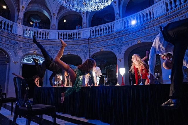 Acest nou spectacol de teatru fizic îi permite Andreei Gavriliu să imagineze o petrecere de dimensiuni mai generoase, în care principalul efect vizual este obținut prin alternanța de sincronuri cu desincronizări ritmice a celor 16 actori/dansatori, o poezie vizuală a unei petreceri-Shiva ca personaj în sine, un fel de coregraf cosmic cu 16 capete și 32 de brațe ce-și unduiește senzual trupul gata de petrecere, impregnând sala generoasă de bal a Palatului Bragadiru cu duhul veseliei, trimis precis prin fiecare pereche de brațe elegante ispitită să-și găsească însoțirea în această aventură. Demonstrând că și-a însușit codul bunelor maniere și că stăpânește deopotrivă arta conversației și pe cea a seducției, fremătând prin fiecare celulă dornică de distracție și validare socială și sexuală, căutând plăcere la fiecare stimul ce-i este așezat în cale tocmai pentru a obține din el maximum de extaz posibil.