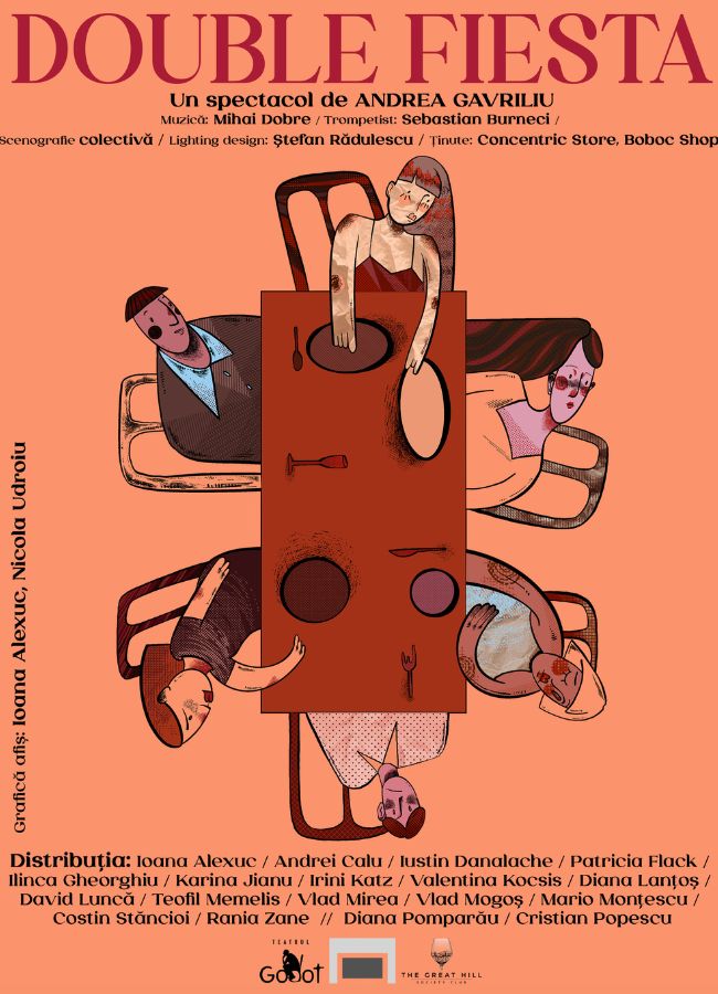După succesul cu performance-ul „Fiesta” la Teatrul Național „Ivan Vazov” din Sofia, Bulgaria (prezent în toamnă la București în cadrul primei ediții X-Fest, Festivalul Internațional de Teatru Tânăr Excelsior), Andrea Gavriliu și-a dublat echipa și eforturile inițiale printr-o nouă producție, de data asta un proiect UNATC (găzduit azi de Teatrul Godot la Palatul Bragadiru), intuind forța și impactul pe care petrecerea augmentată îl va avea asupra publicului.
