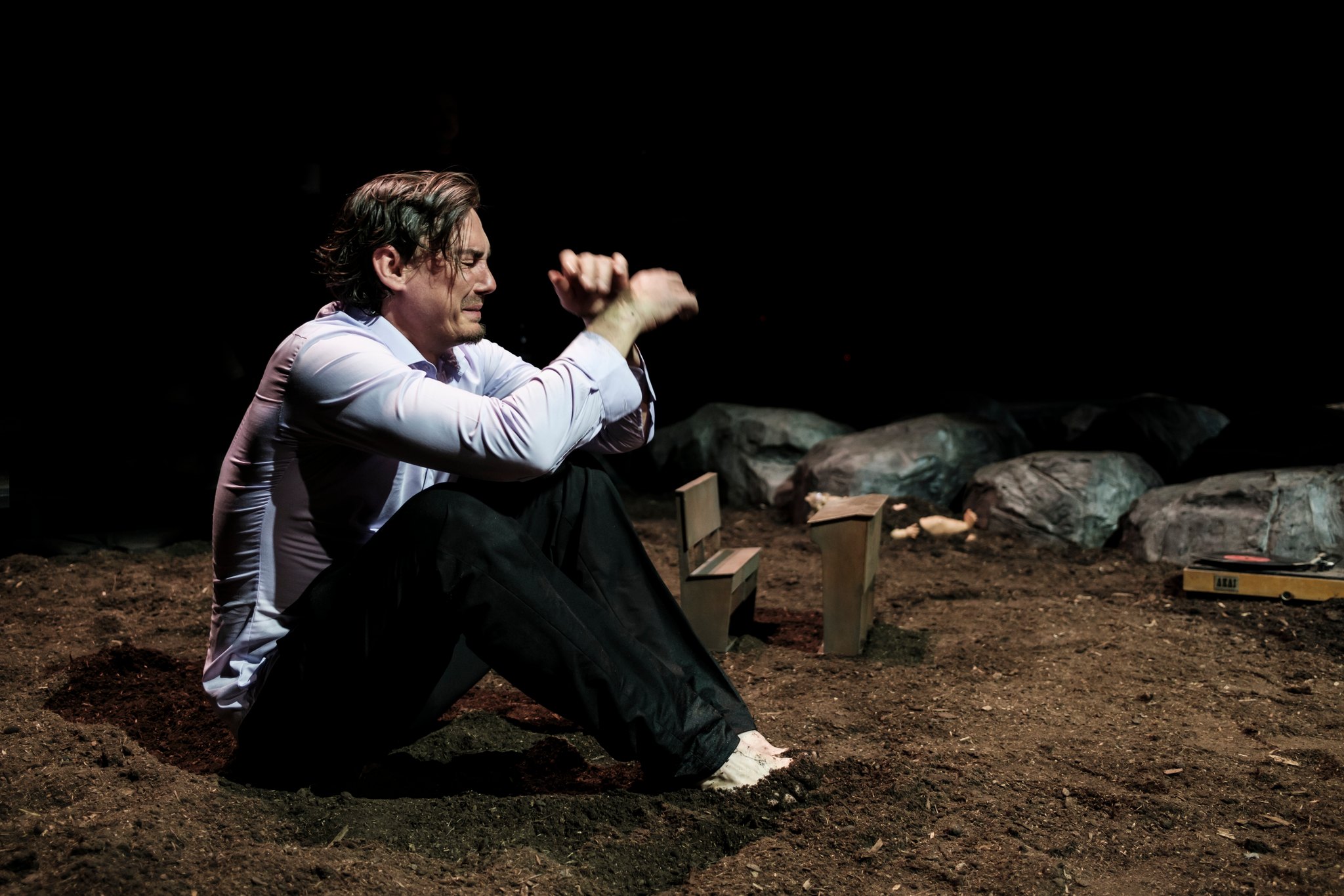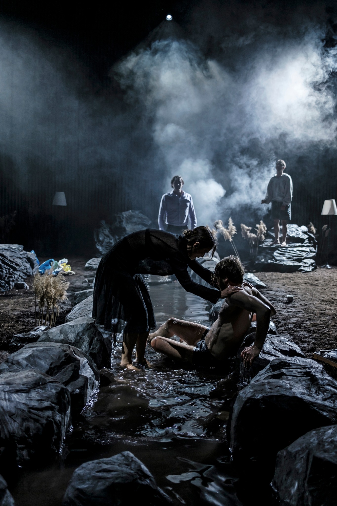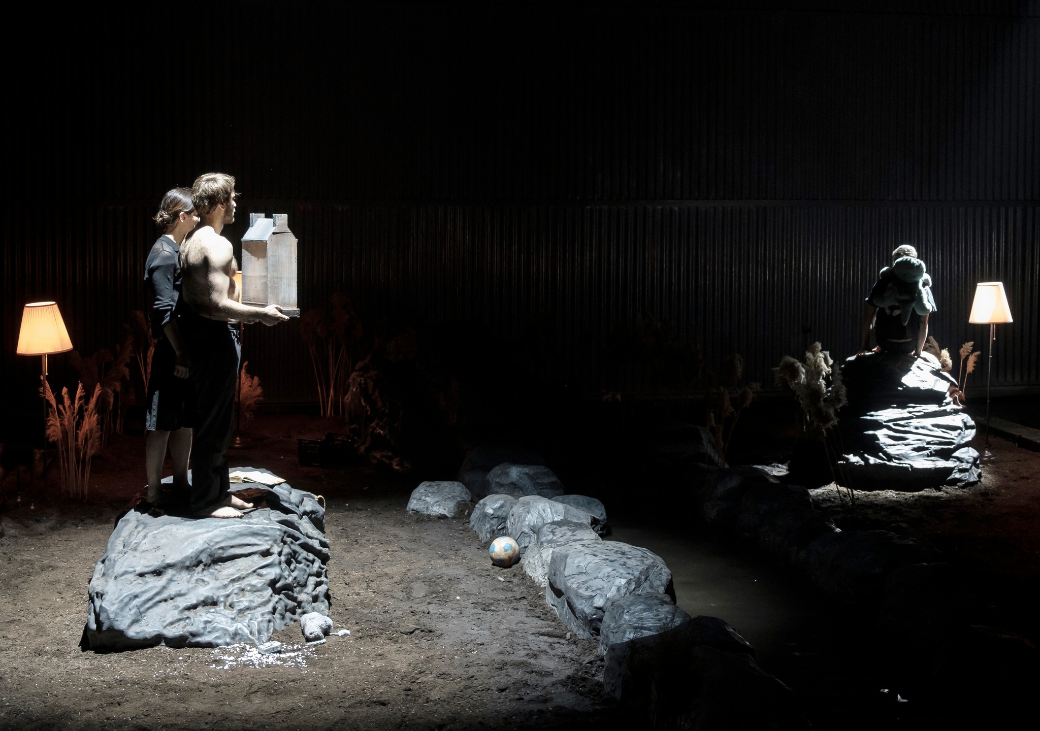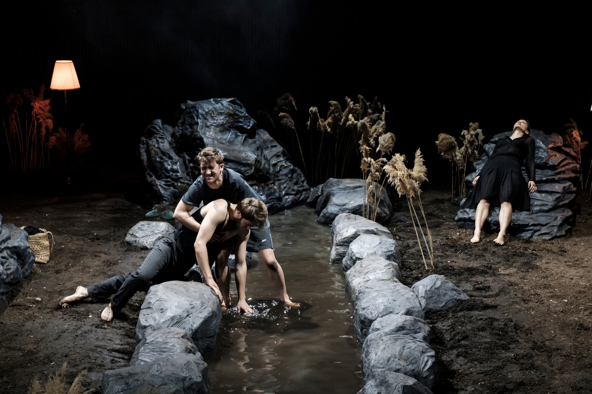 Pentru că Radu Afrim își ancorează toată forța creatoare în pietrele stăvilarului care-i împiedică memoriei iubirii revărsările la întâmplare, sprijinindu-se ba pe un mal, ba pe celălalt (excelent exploatate vizual), jucându-se ca un copil care aruncă de sus cu piatra (cu zgomot, la începutul fiecărui act/piesă!), urmărind apoi cu mare atenție rotocoalele înregistrate de memoria scurtă a apei în momentul impactului, dar mai ales vibrațiile ce vor cuprinde malurile după fiecare cădere.