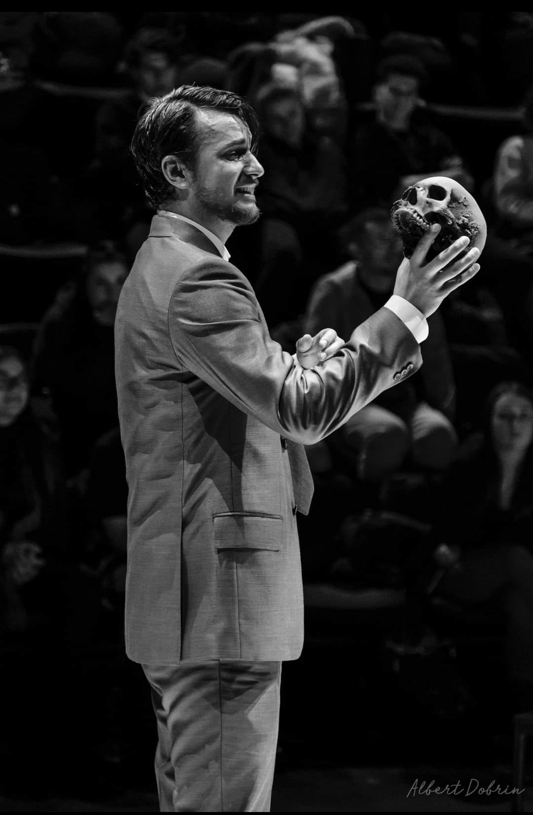 Netezindu-i lui Hamlet calea spre o splendidă nebunie teatrală pe care i-o asigură la superlativ Vlad Udrescu într-un rol excepțional. Un Hamlet singur prins într-un uman corporatist cu care trebuie să lupte sistemic, un Hamlet căruia îi lipsește teribil raisonneurul Horatio (personajul pe care Will i l-a încredințat prințului spre a-i amâna prăbușirea), trimis complice în publicul consultat încontinuu întru verificare și validare (care-l și alimentează mereu pe Vlad Udrescu cu energia bună a spectatorilor și-l răsfață cu recompensele lor la fiecare trecere, aproape candidă, pe toată lungimea gradenelor pe care le iscodește și le însuflețește negreșit). Actorul se dezlănțuie astfel în toată splendoarea personajului nou, aproape imponderabil, ce i-a fost încredințat, plutind de-a dreptul prin scenă, dezinvolt, șarmant, infinit ludic și pe un ton mereu tendențios, ironic și autoironic, caustic până la samavolnic (mai ales în scenele în care-și descarcă furia, îndreptată în principal asupra mamei, pe care o va înfrunta extrem de dur până la urmă în cea mai intensă scenă a spectacolului). Ce simte el trece marginea durerii despre care vorbește. Și asta și joacă Vlad Udrescu.