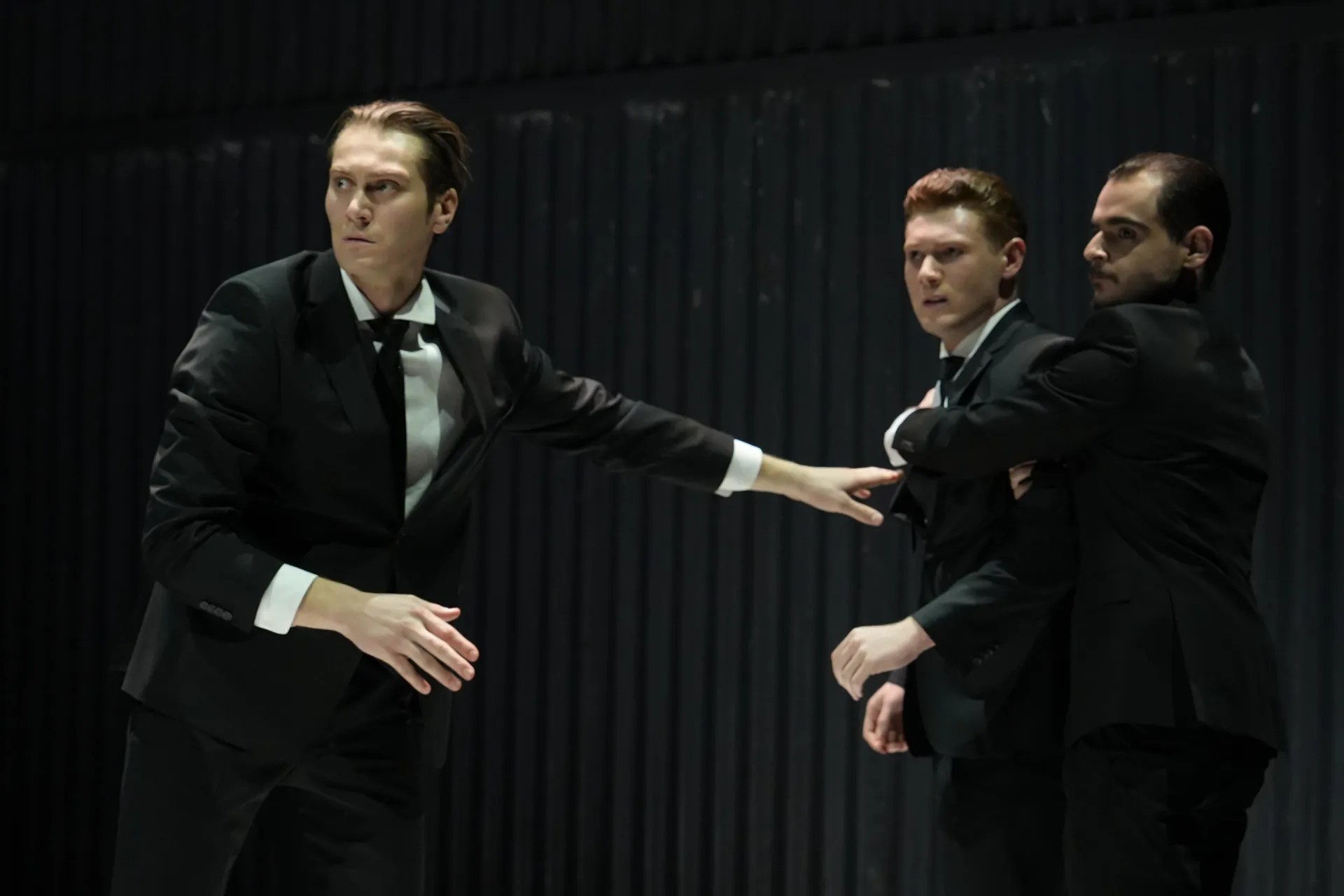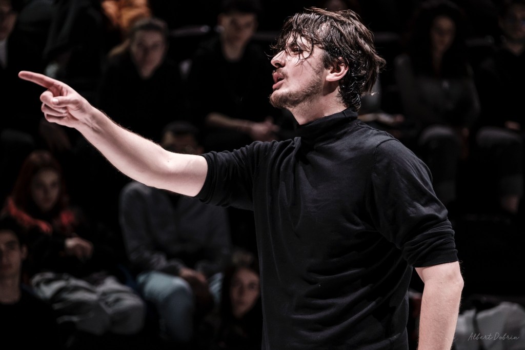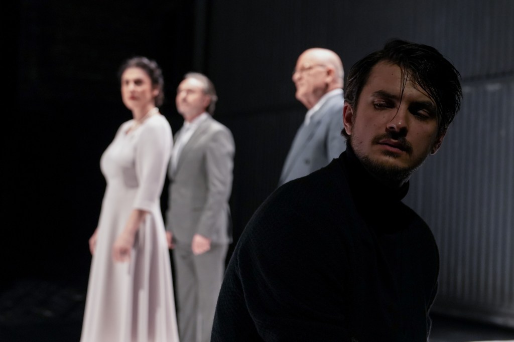 Nu-mi pare deloc un Hamlet derutat, deși e deprimat, trădat, trist și vulnerabil (mai ales în întâlnirile cu fantoma tatălui, înfățișat autoritar de Eugen Titu ca un corporatist intransigent ce-și bântuie fostul birou ca să reașeze lucrurile la locul lor, după obișnuință, trimis la judecată cu tot ce n-a desăvârșit pe cap și întors să le săvârșească prin intermediul fiului îndemnat să-i pună hârtiile în ordine și să-I răzbune printr-o simbolică predare de ștafetă).