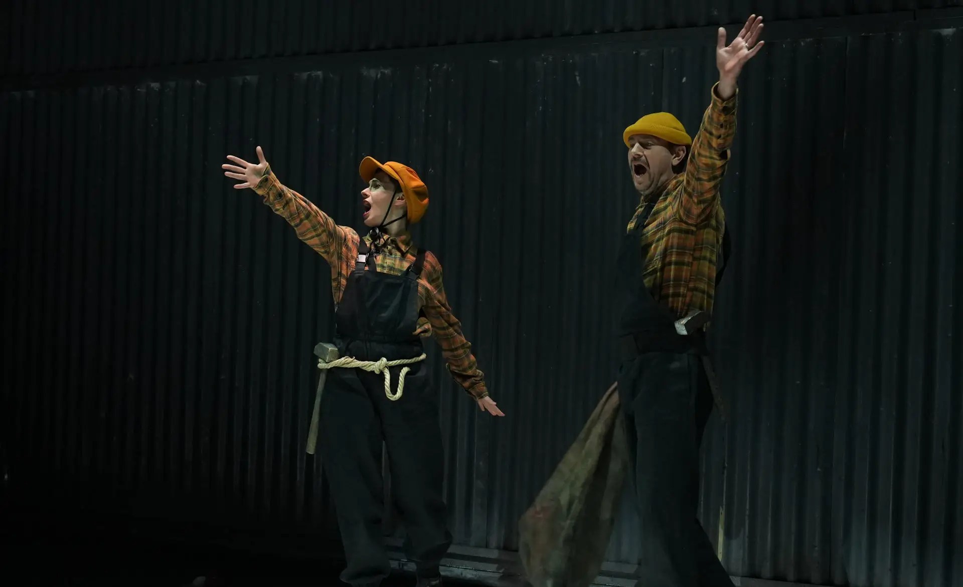 O moarte în care se vor prinde cu toții în liniște (!) sub spade (tulburător mânuite de Vlad Udrescu și Alex Stoicescu), sub privirile amuzate ale groparilor