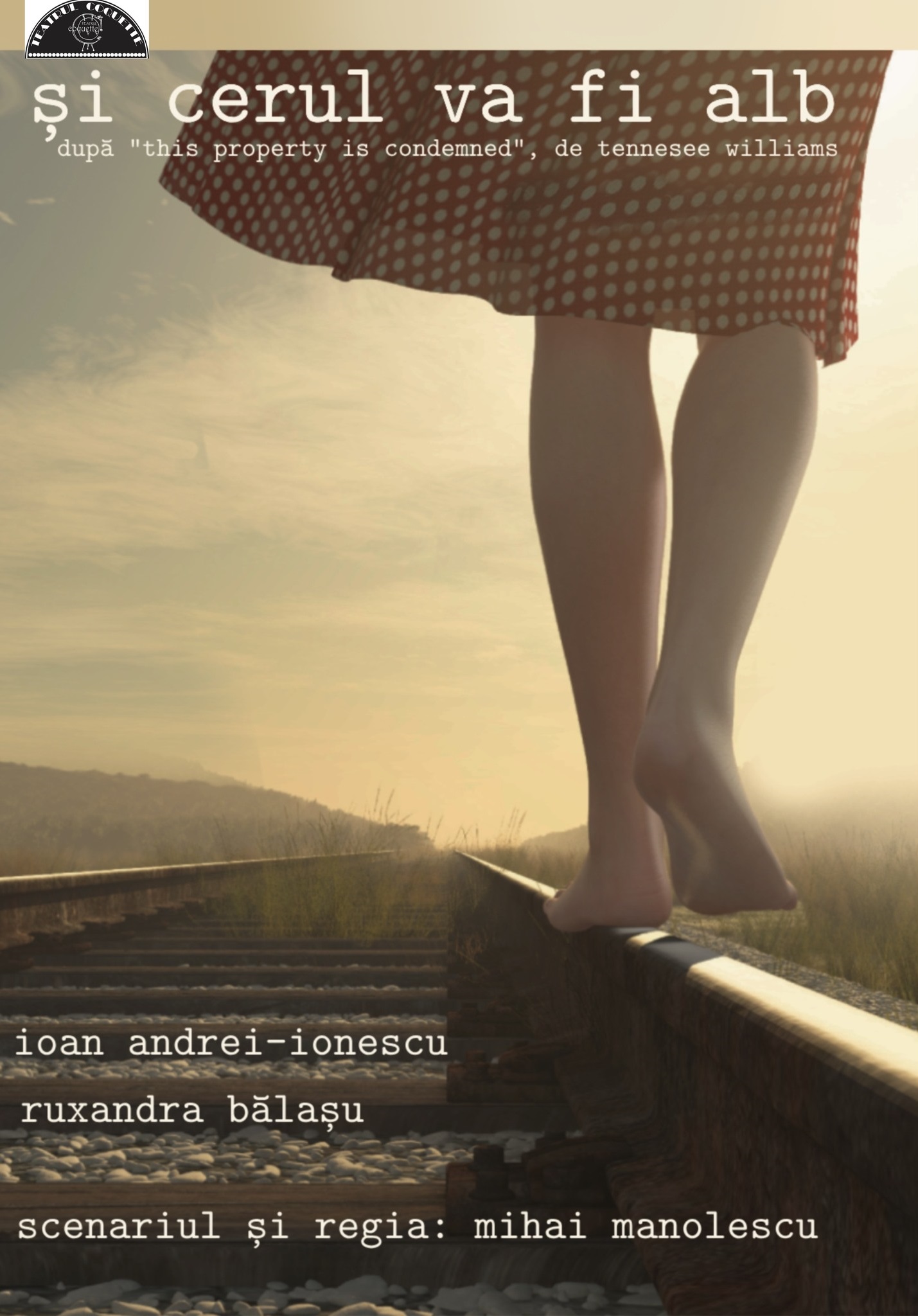 Extrasă cu gentilețe de Mihai Manolescu din trei povești dramatice ale lui Tennessee Williams (având la bază textul piesei într-un act „Proprietate condamnată” / „This property is condemned”, în care au fost condensate ideatic câteva elemente definitorii pentru substratul dramatic din „Menajeria de sticlă” și „Orfeu în infern”) și povestite discret, aproape în secret, într-unul dintre cele mai candide spectacole ale acestei stagiuni bucureștene.