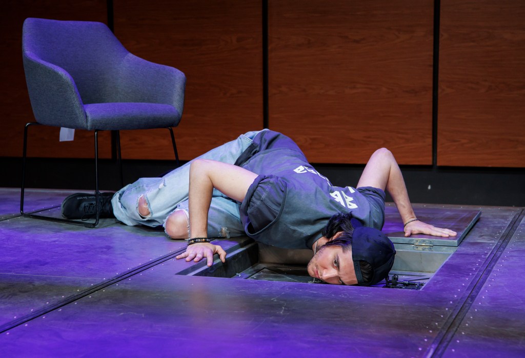 Regizorul pariază de la început pe contrastele multi-strat între cei doi (întâlniți pentru prima dată față în față), care întrețin mocnit flacăra unui conflict mental-emoțional nerostit ce pare să-i mistuie pe fiecare pe interior, azvârlite în scenă prin stridențe pe care le îmblânzește treptat de fiecare dată după ce a captat frust atenția, intrigând prin entuziasme sau octave aparent nepotrivite pentru tonul discuției (ce însoțesc și precipitata lor mișcare în spațiul de joc, în chip de vânător, vânat și pradă, mereu în preschimbare de rol pe măsură ce se (re)cunosc), inițial cu efect comic, care se diluează pe parcurs și se preschimbă abil într-un mecanism dramatic tot mai sofisticat prin care se reglează raporturile de putere între personaje de la o scenă la alta pe un ton din ce în ce mai grav, până se întâlnesc în melancolie, empatie și chiar recunoștință. Șerban Pavlu își introduce zgomotos în poveste personajul, pe care-l va stăpâni mai apoi uluitor, un Dr. Danielson aparent dur și impozant, riguros și cabotin deopotrivă, directorul adjunct al liceului din Sheffield, Massachusetts, care anunță entuziast în difuzoare începutul vacanței de primăvară și-l întâmpină cu aceeași efervescență, aparent deplasată, pe elevul Khadim Asmaan, chemat în biroul lui pentru câteva explicații, pe care Vlad Lință ni-l prezintă stupefiat, obraznic și plin de neîncredere, în toată splendoarea răzvrătirilor lui adolescentine (excelent dozate și articulate pe parcursul spectacolului între naivitate, aroganță, agresivitate, cinism și ingenuitate).