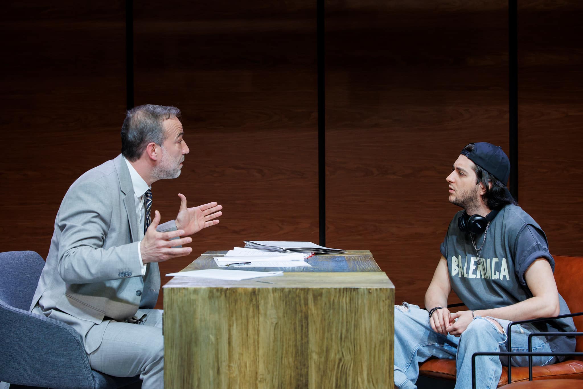 Regizorul pariază de la început pe contrastele multi-strat între cei doi (întâlniți pentru prima dată față în față), care întrețin mocnit flacăra unui conflict mental-emoțional nerostit ce pare să-i mistuie pe fiecare pe interior, azvârlite în scenă prin stridențe pe care le îmblânzește treptat de fiecare dată după ce a captat frust atenția, intrigând prin entuziasme sau octave aparent nepotrivite pentru tonul discuției (ce însoțesc și precipitata lor mișcare în spațiul de joc, în chip de vânător, vânat și pradă, mereu în preschimbare de rol pe măsură ce se (re)cunosc), inițial cu efect comic, care se diluează pe parcurs și se preschimbă abil într-un mecanism dramatic tot mai sofisticat prin care se reglează raporturile de putere între personaje de la o scenă la alta pe un ton din ce în ce mai grav, până se întâlnesc în melancolie, empatie și chiar recunoștință. Șerban Pavlu își introduce zgomotos în poveste personajul, pe care-l va stăpâni mai apoi uluitor, un Dr. Danielson aparent dur și impozant, riguros și cabotin deopotrivă, directorul adjunct al liceului din Sheffield, Massachusetts, care anunță entuziast în difuzoare începutul vacanței de primăvară și-l întâmpină cu aceeași efervescență, aparent deplasată, pe elevul Khadim Asmaan, chemat în biroul lui pentru câteva explicații, pe care Vlad Lință ni-l prezintă stupefiat, obraznic și plin de neîncredere, în toată splendoarea răzvrătirilor lui adolescentine (excelent dozate și articulate pe parcursul spectacolului între naivitate, aroganță, agresivitate, cinism și ingenuitate).