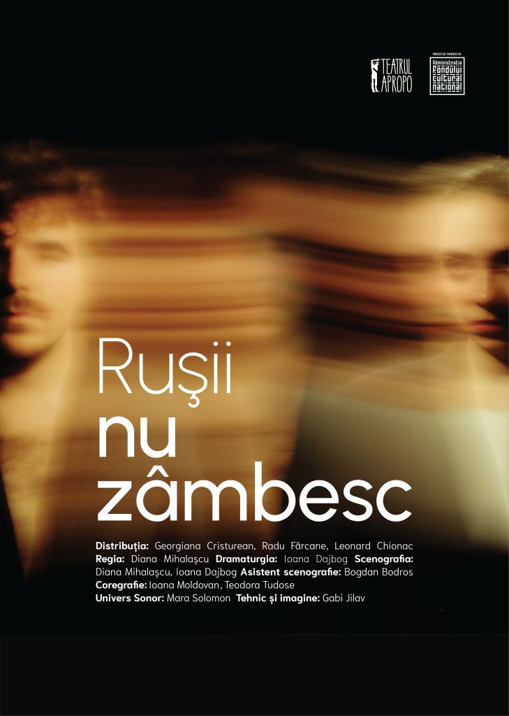 24 februarie 2022. Cu noaptea-n cap, cuprins de o febră care îi amenință și ultima fărâmă de liniște, un cuplu trăiește intens ora la care Rusia invadează Ucraina. Dimpreună cu intimitatea lor și viețile a mii și mii de alte cupluri de pe chipul cărora s-a șters brusc orice urmă de veselie, ținând în loc și maculând istoria iubirilor lumii. „Rușii nu zâmbesc”. Așa cum observă trist o bunică resemnată din textul dramatic al Ioanei Dajbog, prin ale cărei vene curge de multă vreme sânge vinovat de la Răsărit, pompat acum cu responsabilitate genetică sub imperiul datoriiilor ancestrale către inimile foarte tinere, care se prezintă gata frânte la apelul neprevăzut al istoriei.Pe granițele căruia Diana Mihalașcu a clădit împreună cu colegii ei de la Facultatea de Teatru și Film a Universității Babeș-Bolyai din Cluj-Napoca o mică poveste teatral-coregrafică, montată de curând pe scena Teatrului Apropo. Ca un spasm precis al mușchiului nostru social, contractat involuntar în membrele mai tinere prin care ne grăbim alergarea către cine știe ce, sub amenințări pe care nu și le-ar fi putut închipui în urmă cu doar câțiva ani, când încă își mai exersa pașii de dans în sala de balet a unui viitor pe care și l-a închipuit mult mai liniștit.
