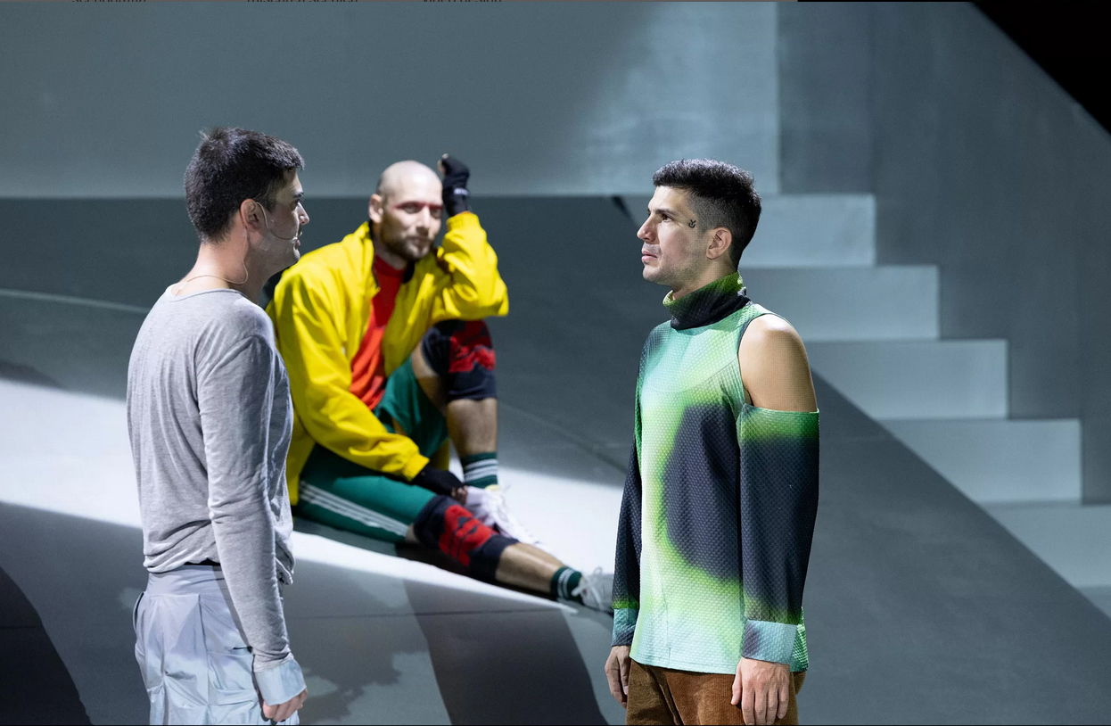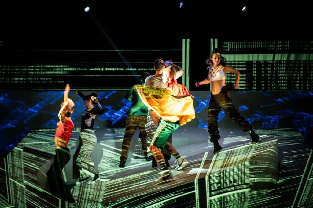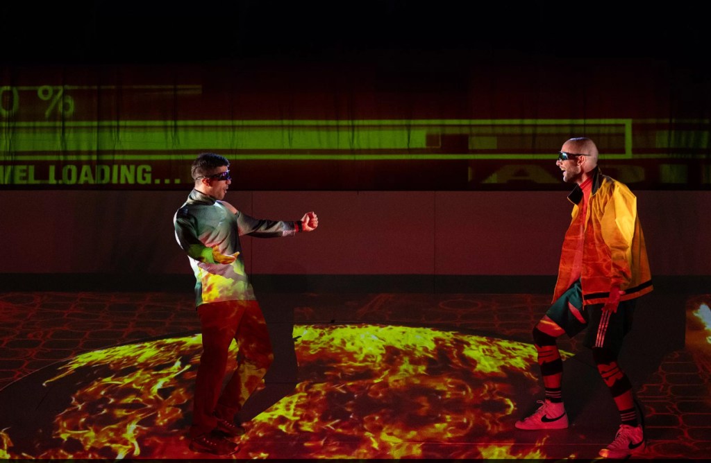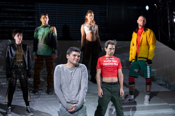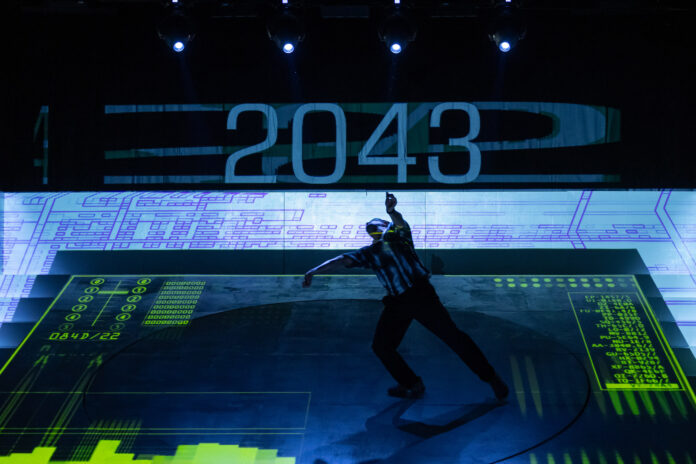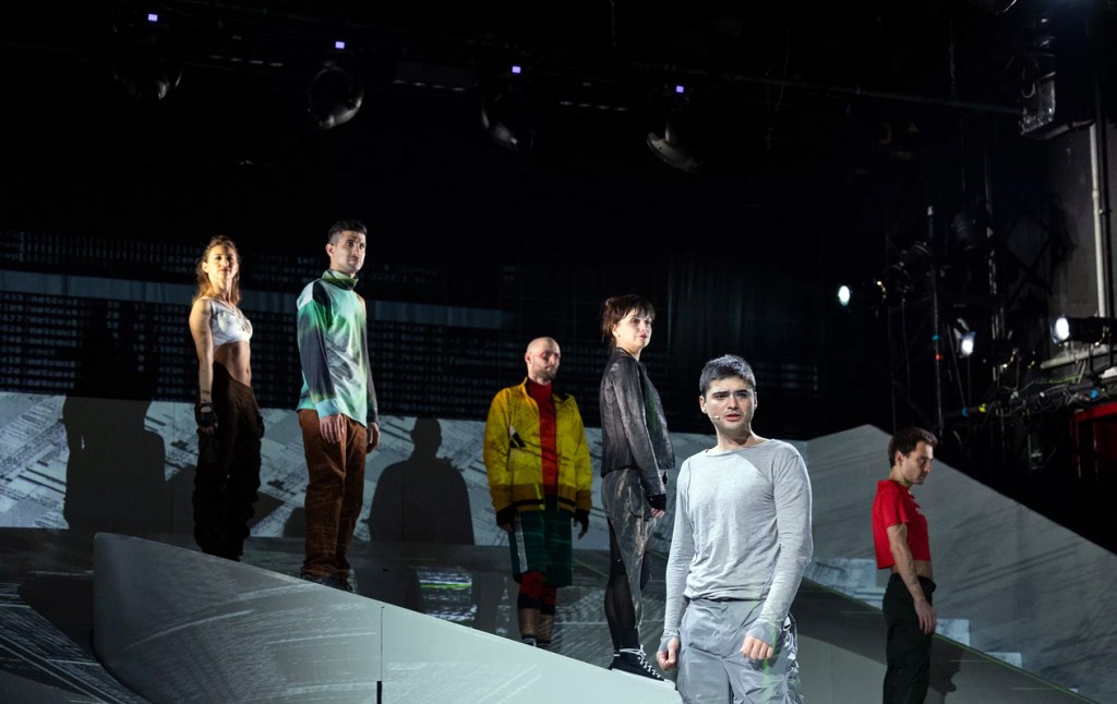 Pe acordurile disco-futuriste cu savuroase accente egiptene (!), metalic-scurtcircuitate vremelnic într-un misterios screening acustic ambiental (ce i-au adus lui Adrian Piciorea o binemeritată nominalizare la UNITER pentru muzica și sound design-ul acestui spectacol) aplicat spectatorului de azi și celor șase minunați actori (încă neînlocuiți de AI!) mișcați cu socoteală prin spațiul de joc de Florin Fieroiu printre orizontalele colorate ale impulsurilor luminoase ce asigură plinul pe o fascinantă laser-tag arena, plină de reflexii de pe suporturi tip ecran dintr-un viitor postuman imaginat de Theodor Cristian Niculae în complicitate cu Andrei Cozlac, Radu Nica ne poartă cu o precizie milimetrică prin pledoaria dramatică ridicată naturalului către un viitor mai mult decât plauzibil ce va fi găzduit de scena Sălii „Ion Lucian”.