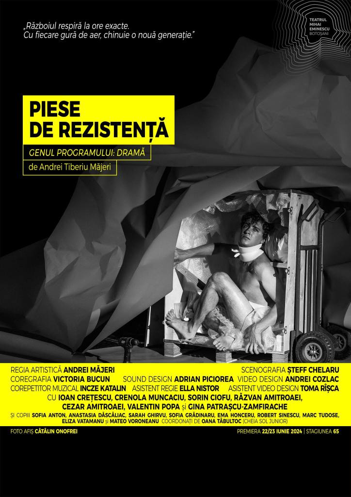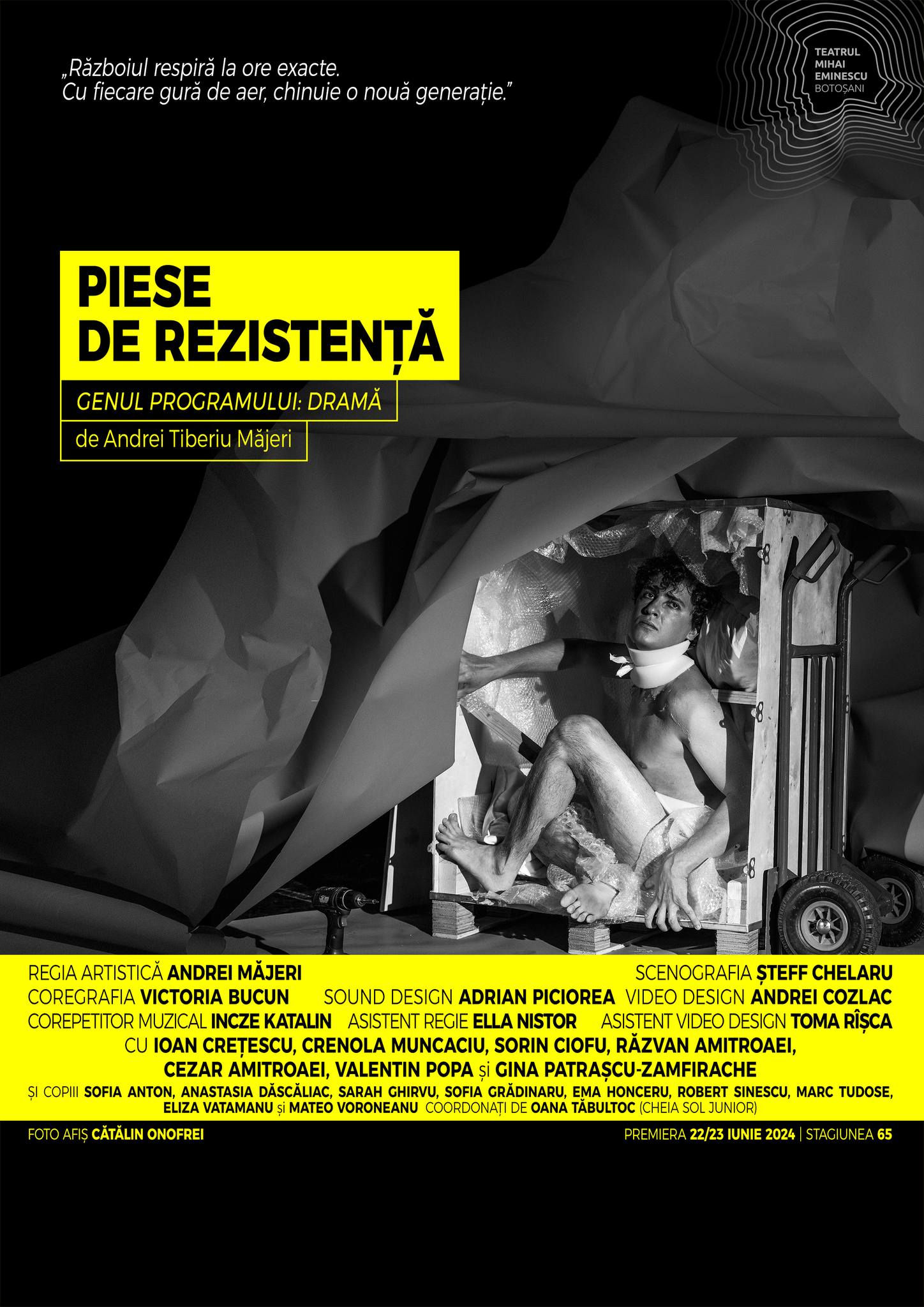 „Piese de rezistență”, spectacolul montat de Andrei Măjeri la Teatrul „Mihai Eminescu” din Botoșani după propria piesă (cu care a câștigat Concursul Național de Dramaturgie organizat de filiala București-Dramaturgie a Uniunii Scriitorilor din România și Muzeul Național al Literaturii Române, cu titlul original „God of the Gaps”) ne pune față-n față cu efectele la vedere ale unui război care a zguduit acest colț de lume în urmă cu 30 de ani, cel din Bosnia, cel mai sângeros episod din procesul de dezintegrare a fostei federații iugoslave. După care românii, contemporani cu un alt război ce-și șuieră de doi ani amenințările de foc în proximitatea granițelor noastre (cel pornit de ruși în Ucraina), încep să cotrobăie emoțional prin memoria colectivă, răscolind dureri mai vechi, invocând atrocitățile de care încă mai poate fi capabilă omenirea și în acest secol, speriați că situația din țara vecină ar putea scăpa oricând de sub control.