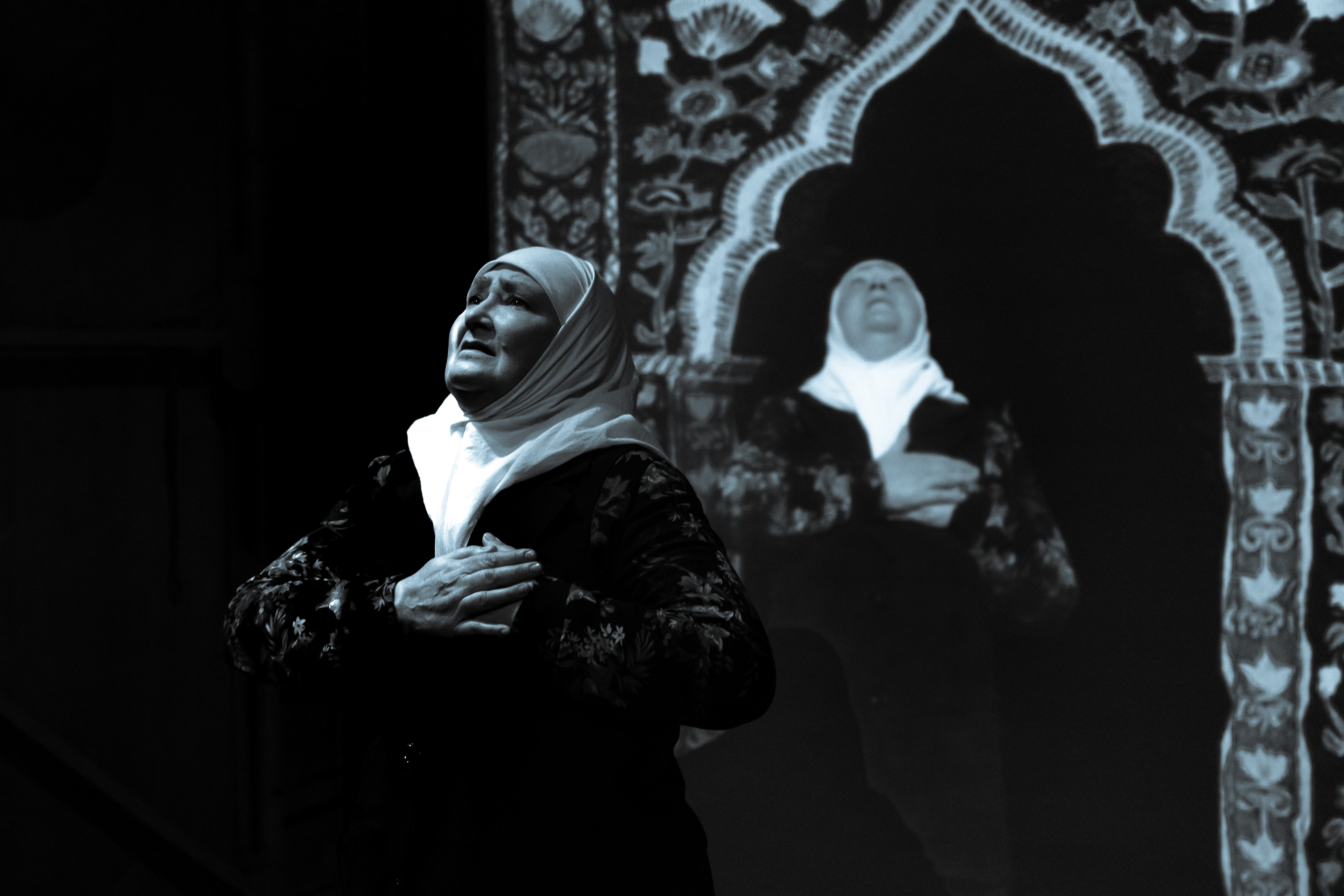 Este și cazul Hatidžei a impresionantei Crenola Muncaciu, o mamă bosniacă (dintre miile de mame musulmane văduvite de bucuria familiei) care-și îndreaptă rugăciunile către Mecca (bine pusă în valoare de Andrei Cozlac) în timp ce dă sfâșietor glas celui mai puternic monolog al acestui eveniment teatral (bocetul ei va penetra mai apoi din umbră și alte monologuri). O actriță de o forță impresionantă, Crenola Muncaciu mișcă aproape chirurgical tăișul cu care opereză sufletul spectatorului, pentru a-i picura direct sub piele durerea personajului lansat într-un poem-rugăciune despre acceptare, iertare și uitare ca etape distincte pe calea vindecării celei mai mari suferințe pe care Dumnezeul ei a lăsat-o oamenilor întru purificare. Lăsând lui Allah sarcina de a hrăni sufletele flămânde de viață netrăită cărora încă le mai așează la fiecare masă farfuriile goale prin care le marchează absența și le promite neuitarea. O piatră dintre miile de pietre ce pot ridica prin credința lor stăvilare care pot opri în loc, măcar pentru o clipă de confesiune, curgerea absurdă a istoriei. Numai ca să-i schimbe cursul către o pajiște mai senină cu mame mai fericite (ce nu vor fi preschimbate brusc în surori, mătuși, bunici) care-și pot îmbrățișa liniștite copiii în flanel albastru împletit cu dragoste de degetele lor grijulii pentru mângâierea oaselor ce au să rămână la locul lor, înainte ca oameni mai pricepuți la jocul ăsta să pună mâna pe pietre și să le folosească altminteri.