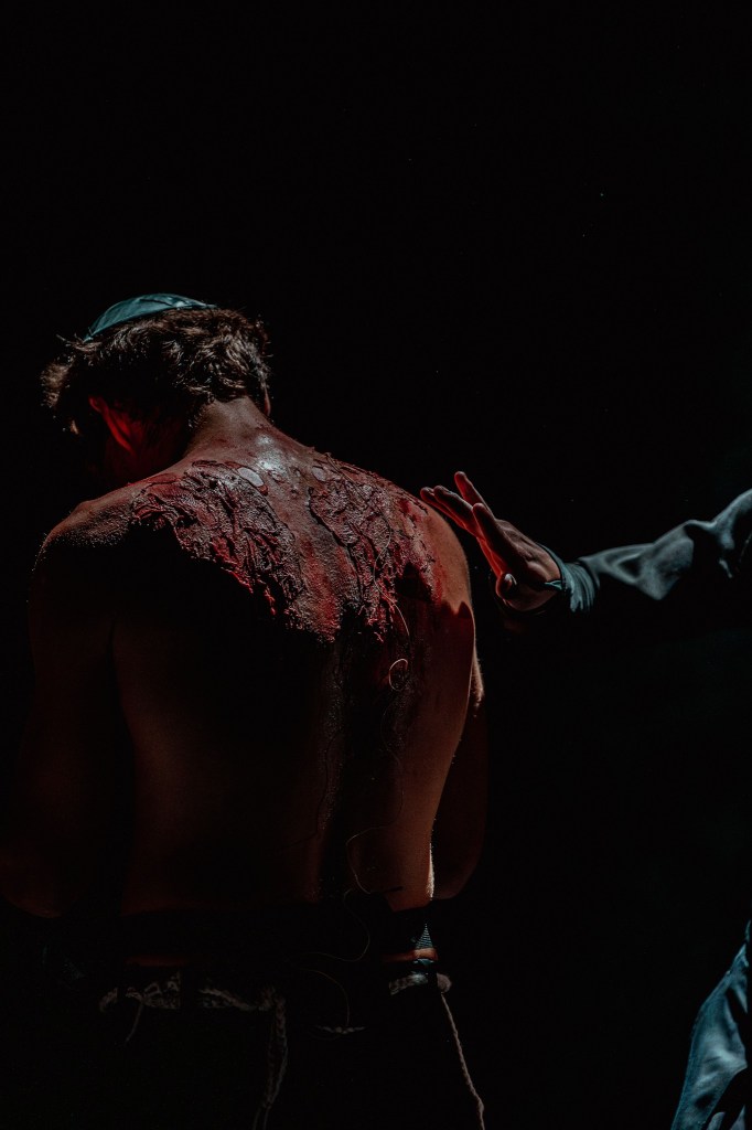 Și nu unde s-ar cuveni poate, înăuntru, în altarul sufletului miresei lui Mesia în care se poate simți credința și dragostea și unde răfuiala cu Dumnezeu se aude cel mai bine. Seara, în spatele lunii și a jocului de cuvinte din jurul personajului episodic Sarah (interpretat, alternativ, de Ana Bumbac și Cabiria Morgenstern), care vine să pună punctul pe (mes)i(a). Și pe toată nevoia noastră de el și de căutare a lui, la ceas de mărturisire și de aducere aminte sub lumina blândă a lumânărilor aprinse în brațele Menorei.